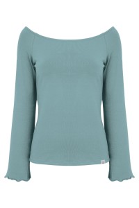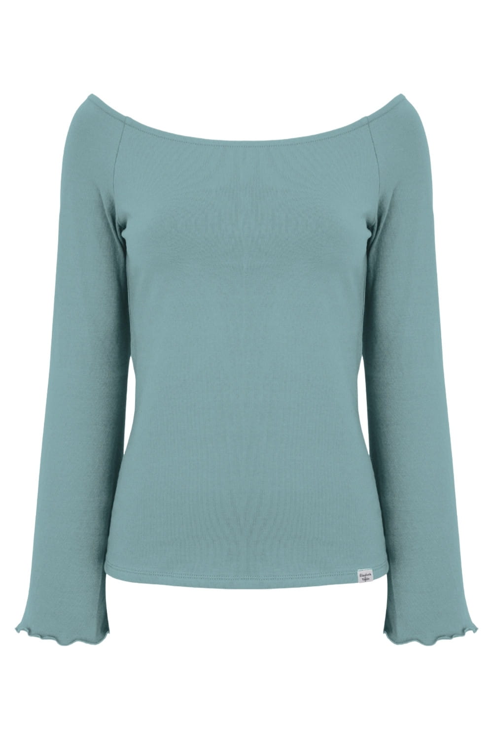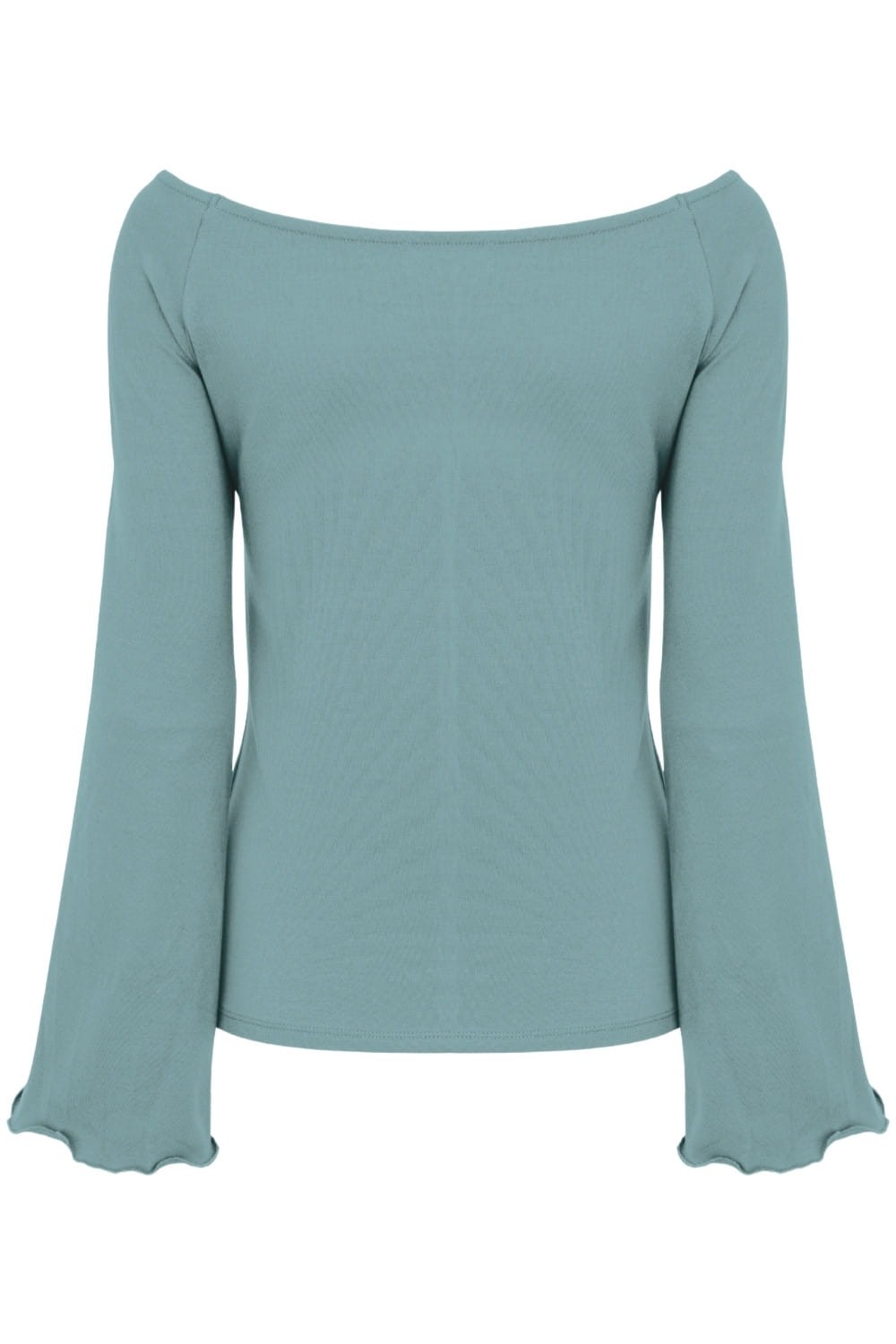 LAURA - Arctic - wiskozowa taliowana bluzka z długimi reglanowymi rękawkami typu dzwonek z szerokim dekoltem w łódkę