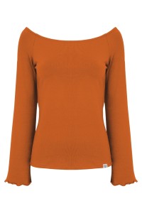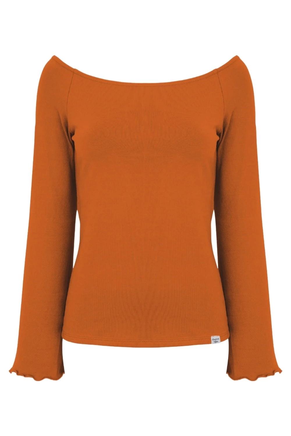 LAURA - Autumn Glaze - wiskozowa taliowana bluzka z długimi reglanowymi rękawkami typu dzwonek z szerokim dekoltem w łódkę