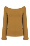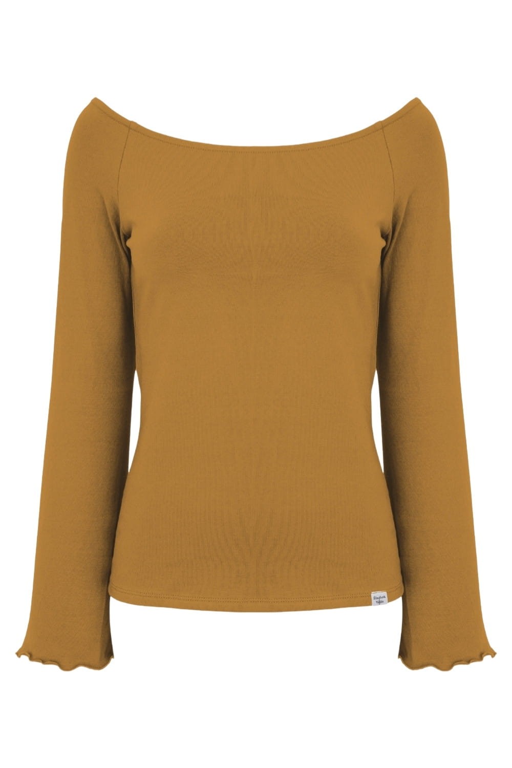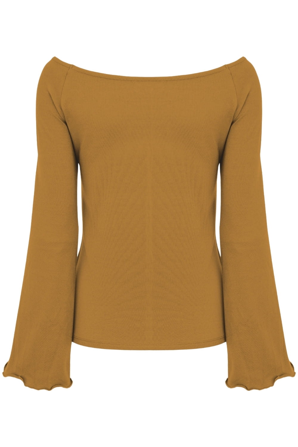 LAURA - Biscuit - bawełniana taliowana bluzka z długimi reglanowymi rękawkami typu dzwonek z szerokim dekoltem w łódkę