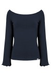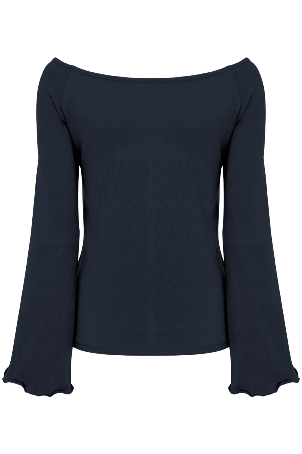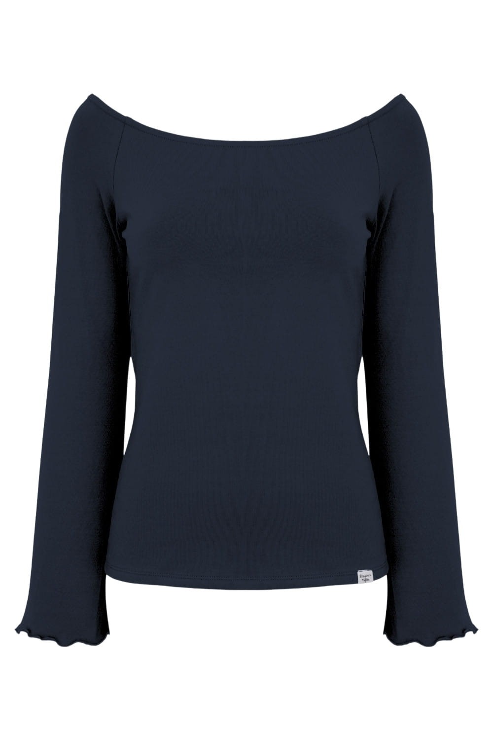 LAURA - Blueberry - bawełniana taliowana bluzka z długimi reglanowymi rękawkami typu dzwonek z szerokim dekoltem w łódkę