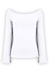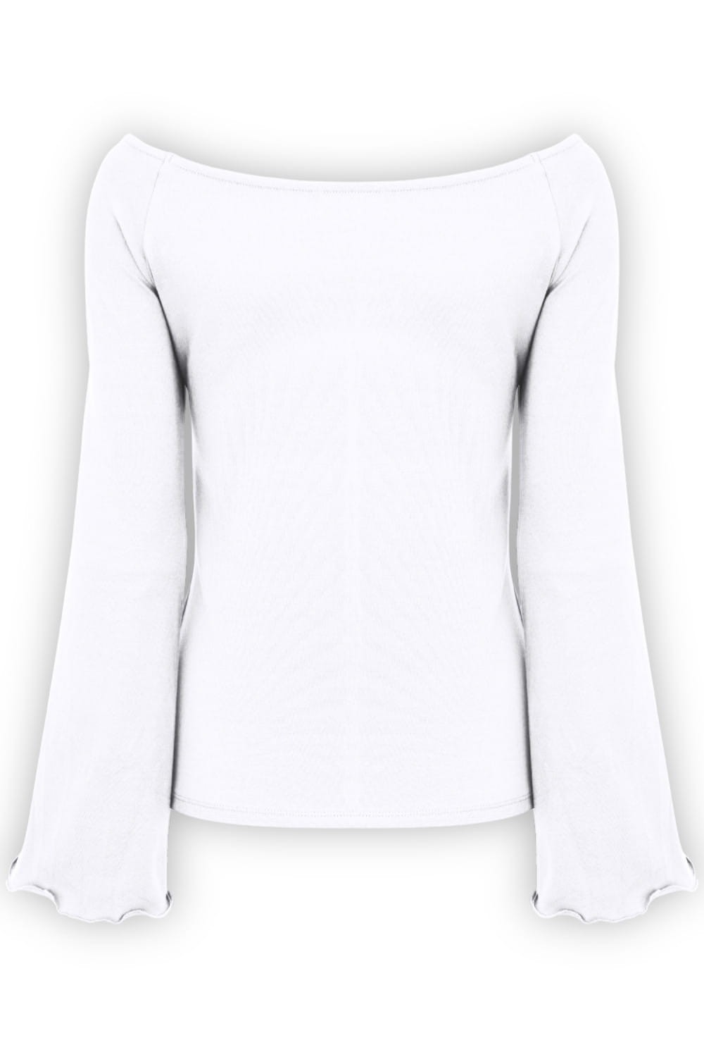 LAURA - Brilliant White - bawełniana taliowana bluzka z długimi reglanowymi rękawkami typu dzwonek z szerokim dekoltem w łódkę