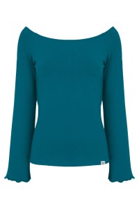 Bluzka Laura charakteryzuje się taliowanym krojem, który zmysłowo podkreśla sylwetkę, nie krępując przy tym ruchów. Długie rękawy zakończone delikatną falbanką dodają jej subtelności i kobiecości. Szeroki dekolt typu łódka jest klasyczny, ale sprawia, że bluzka nabiera lekkości i elegancji.