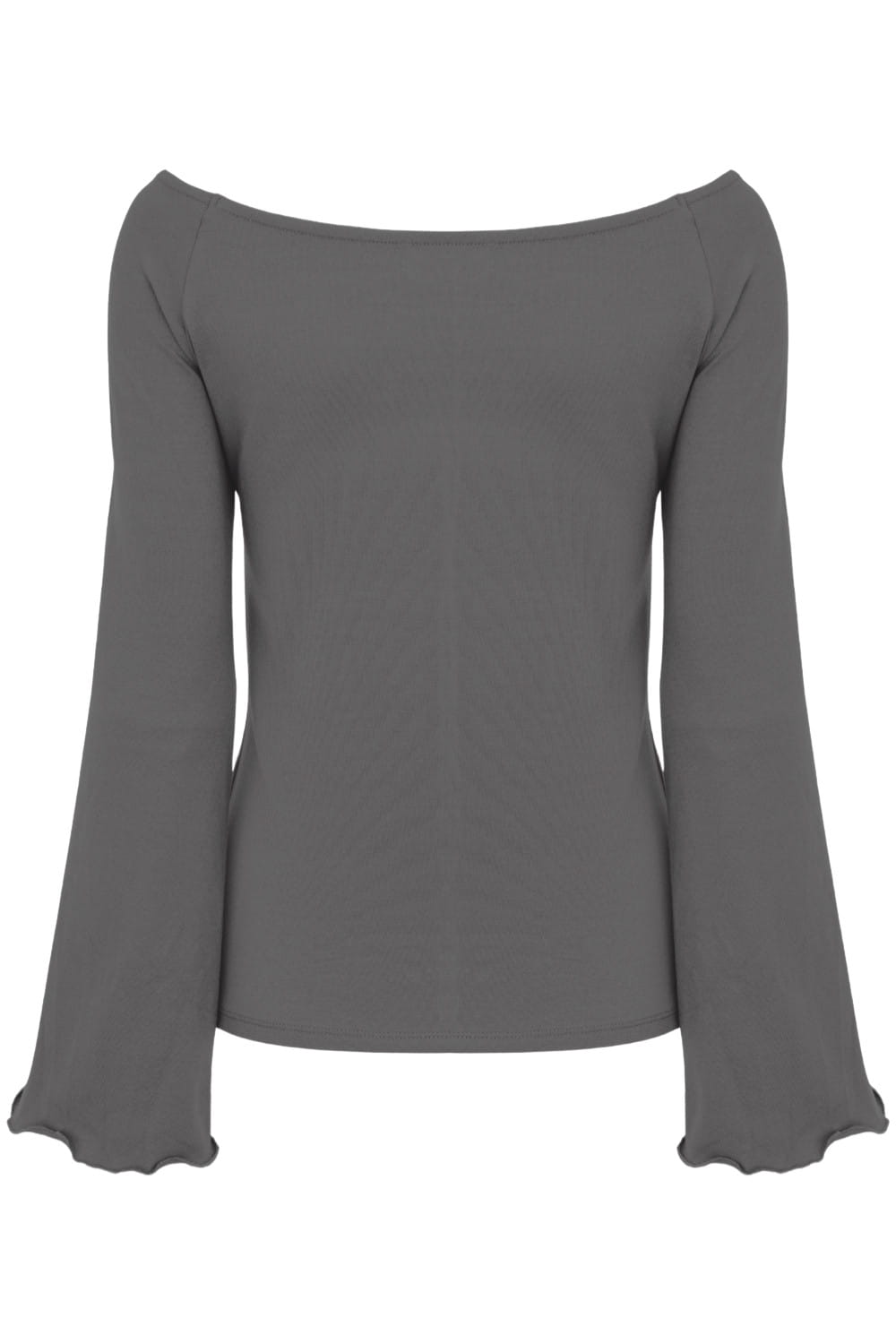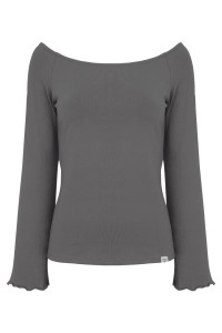 LAURA - Charcoal Gray - wiskozowa taliowana bluzka z długimi reglanowymi rękawkami typu dzwonek z szerokim dekoltem w łódkę