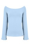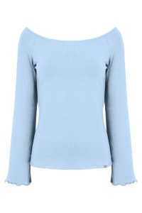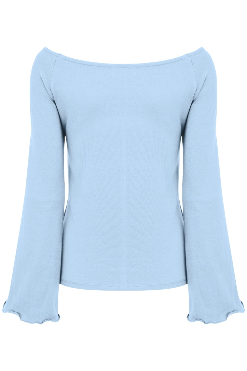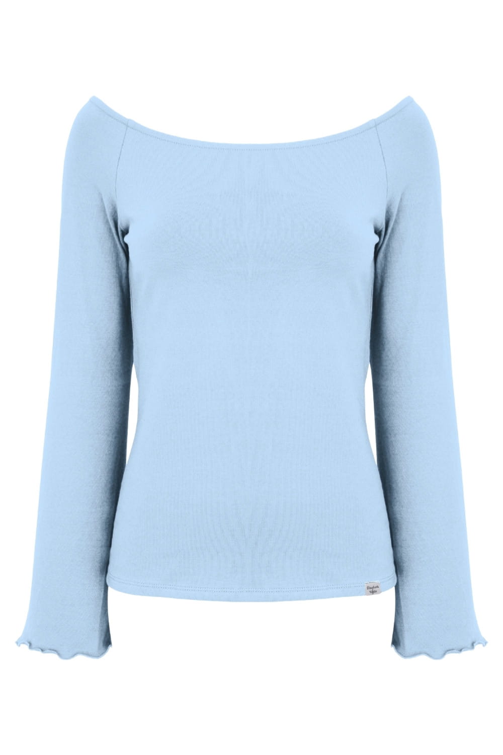 LAURA - Dusk Blue - wiskozowa taliowana bluzka z długimi reglanowymi rękawkami typu dzwonek z szerokim dekoltem w łódkę