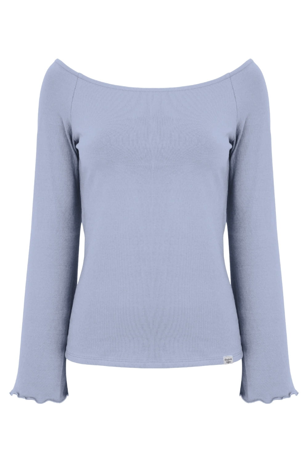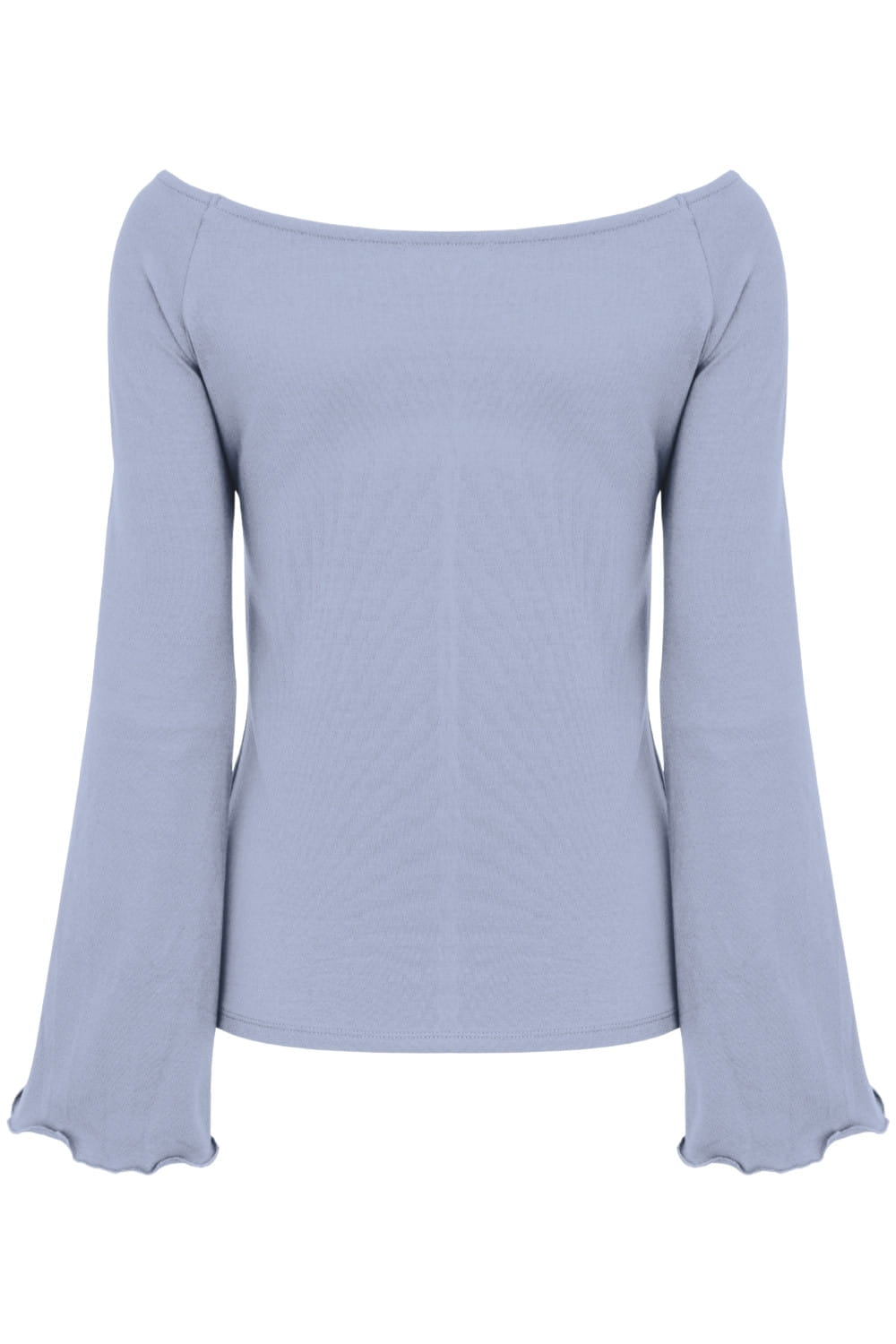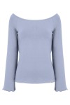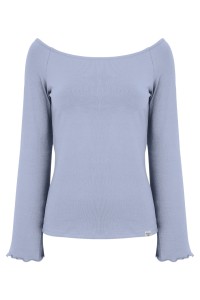 LAURA - Faded Denim - wiskozowa taliowana bluzka z długimi reglanowymi rękawkami typu dzwonek z szerokim dekoltem w łódkę