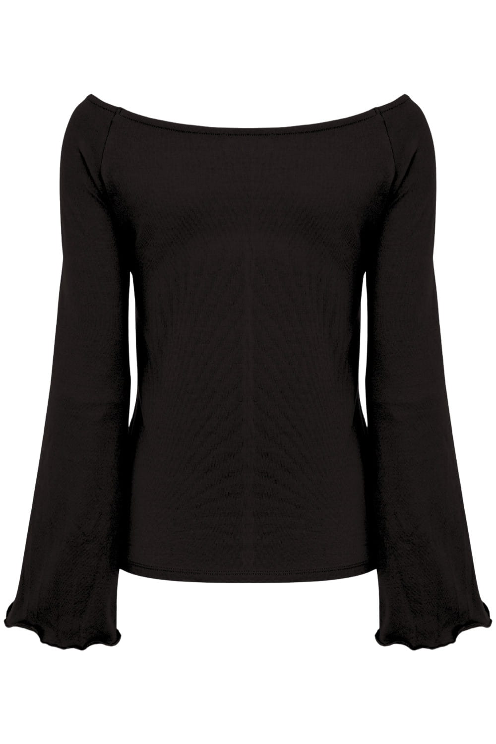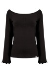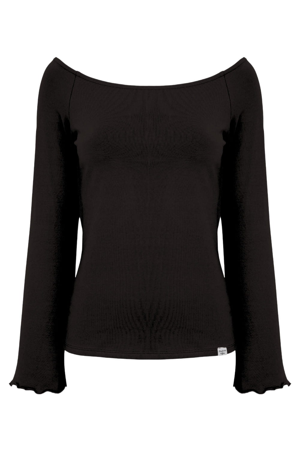 LAURA - Ganache - wiskozowa taliowana bluzka z długimi reglanowymi rękawkami typu dzwonek z szerokim dekoltem w łódkę