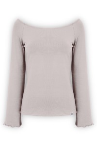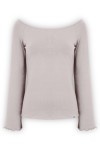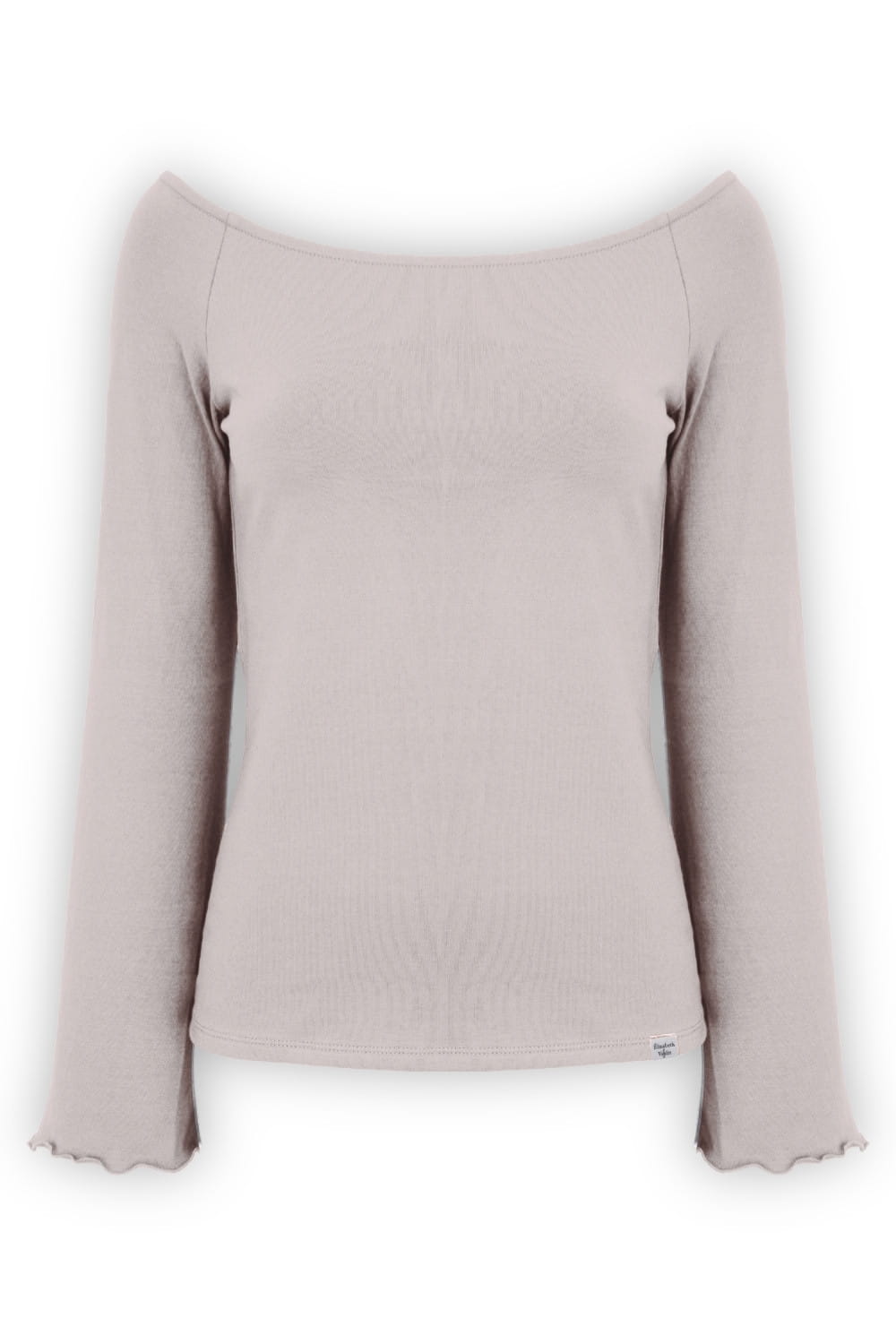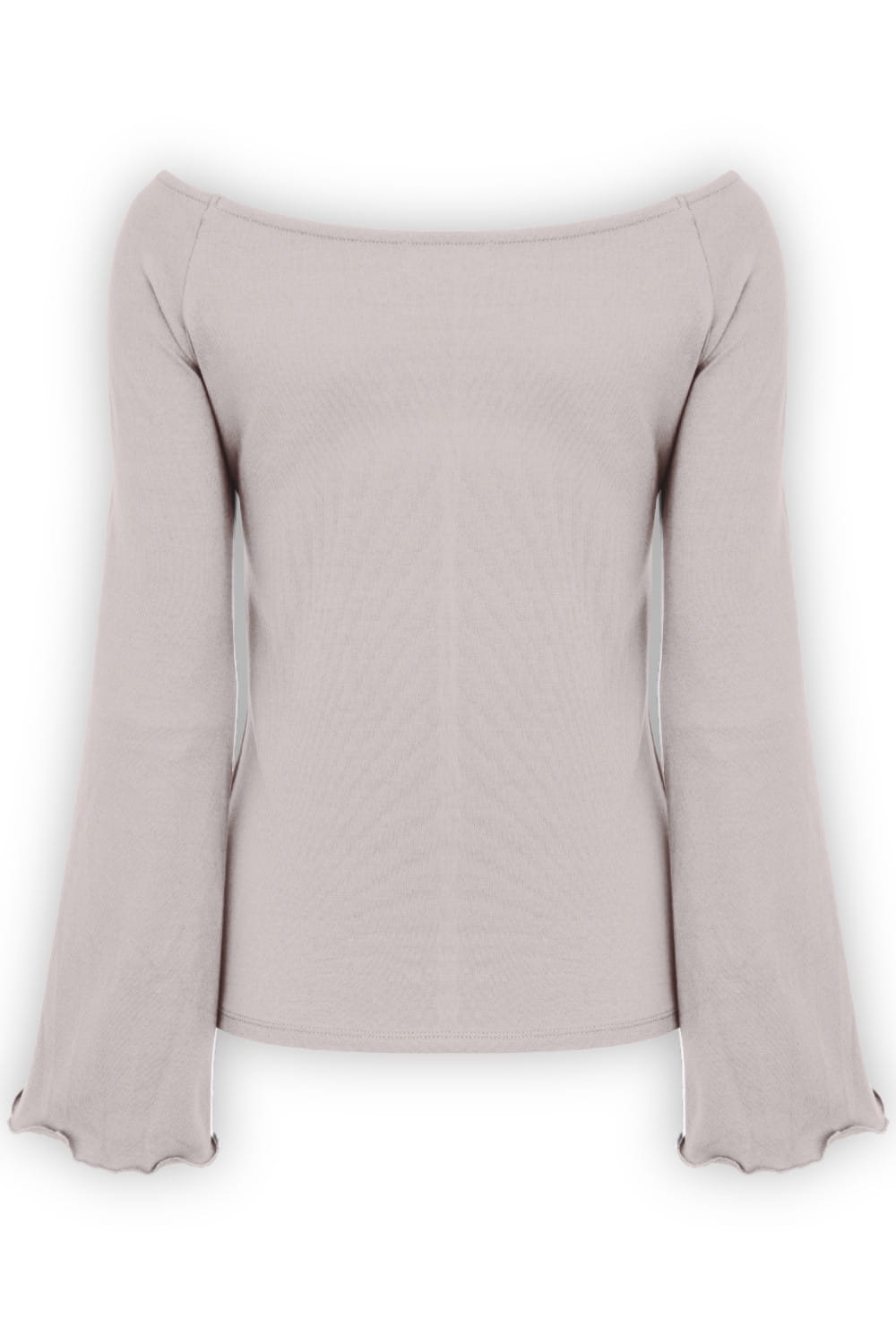 LAURA - Gray Morn - bawełniana taliowana bluzka z długimi reglanowymi rękawkami typu dzwonek z szerokim dekoltem w łódkę