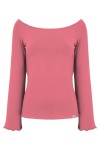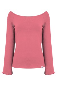 LAURA - Holly Berry - bambusowa taliowana bluzka z długimi reglanowymi rękawkami typu dzwonek z szerokim dekoltem w łódkę