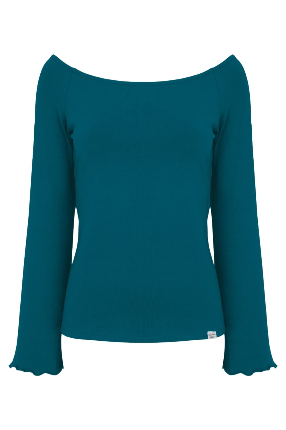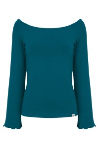 LAURA - Moroccan Blue - wiskozowa taliowana bluzka z długimi reglanowymi rękawkami typu dzwonek z szerokim dekoltem w łódkę