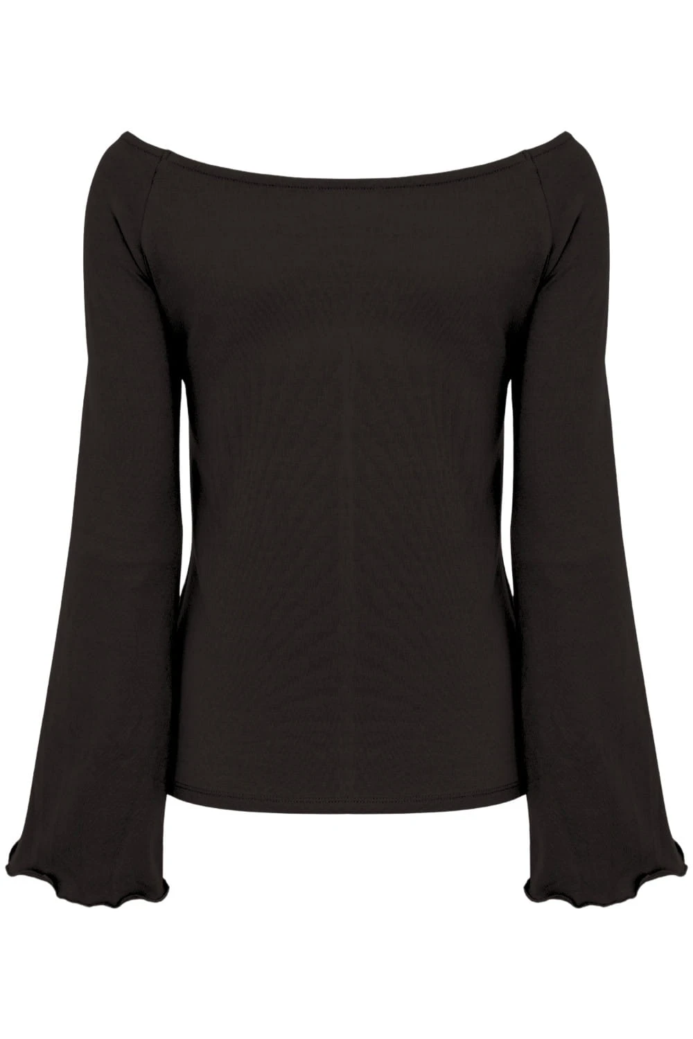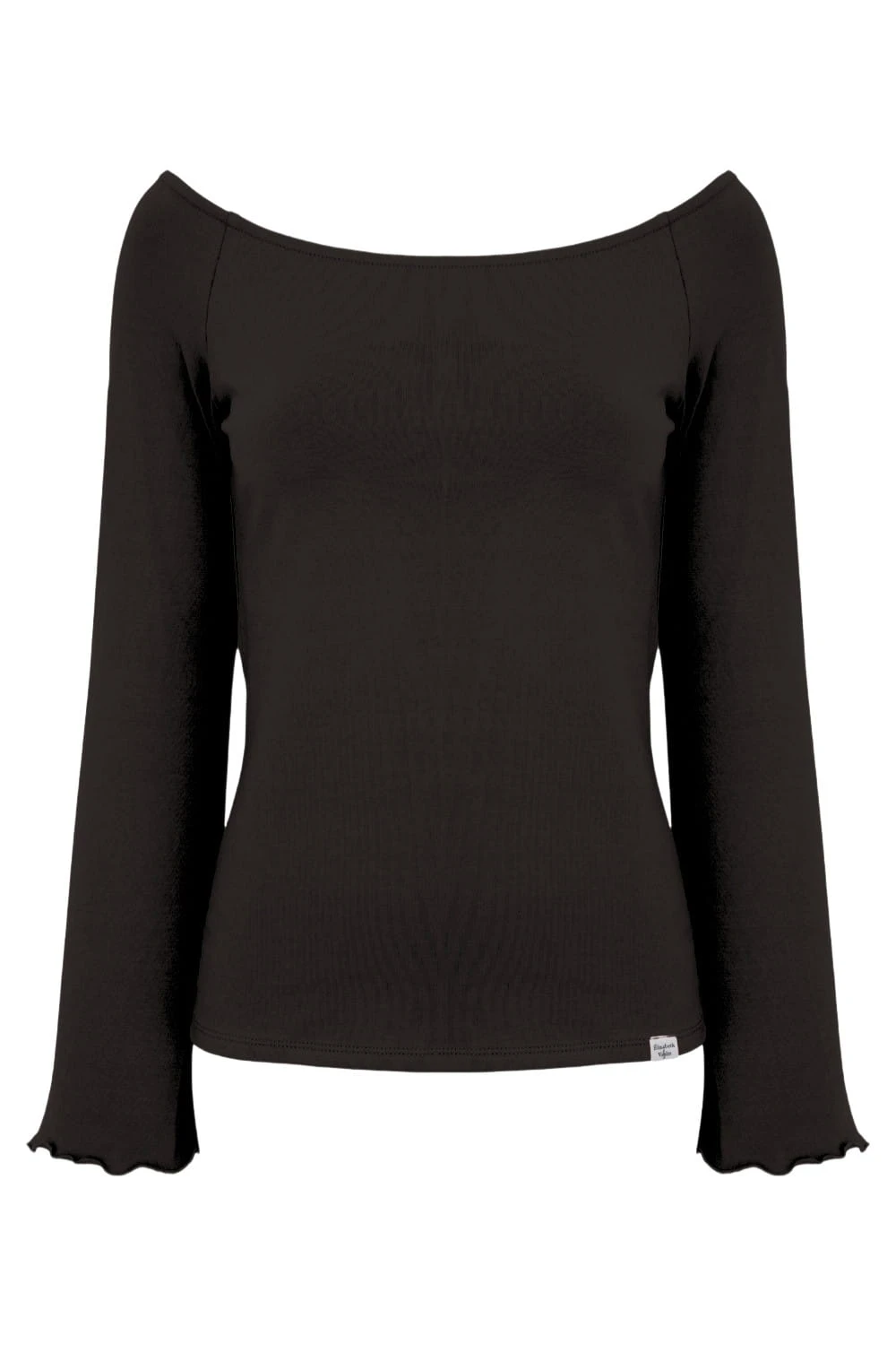 LAURA - Mulch - wiskozowa taliowana bluzka z długimi reglanowymi rękawkami typu dzwonek z szerokim dekoltem w łódkę