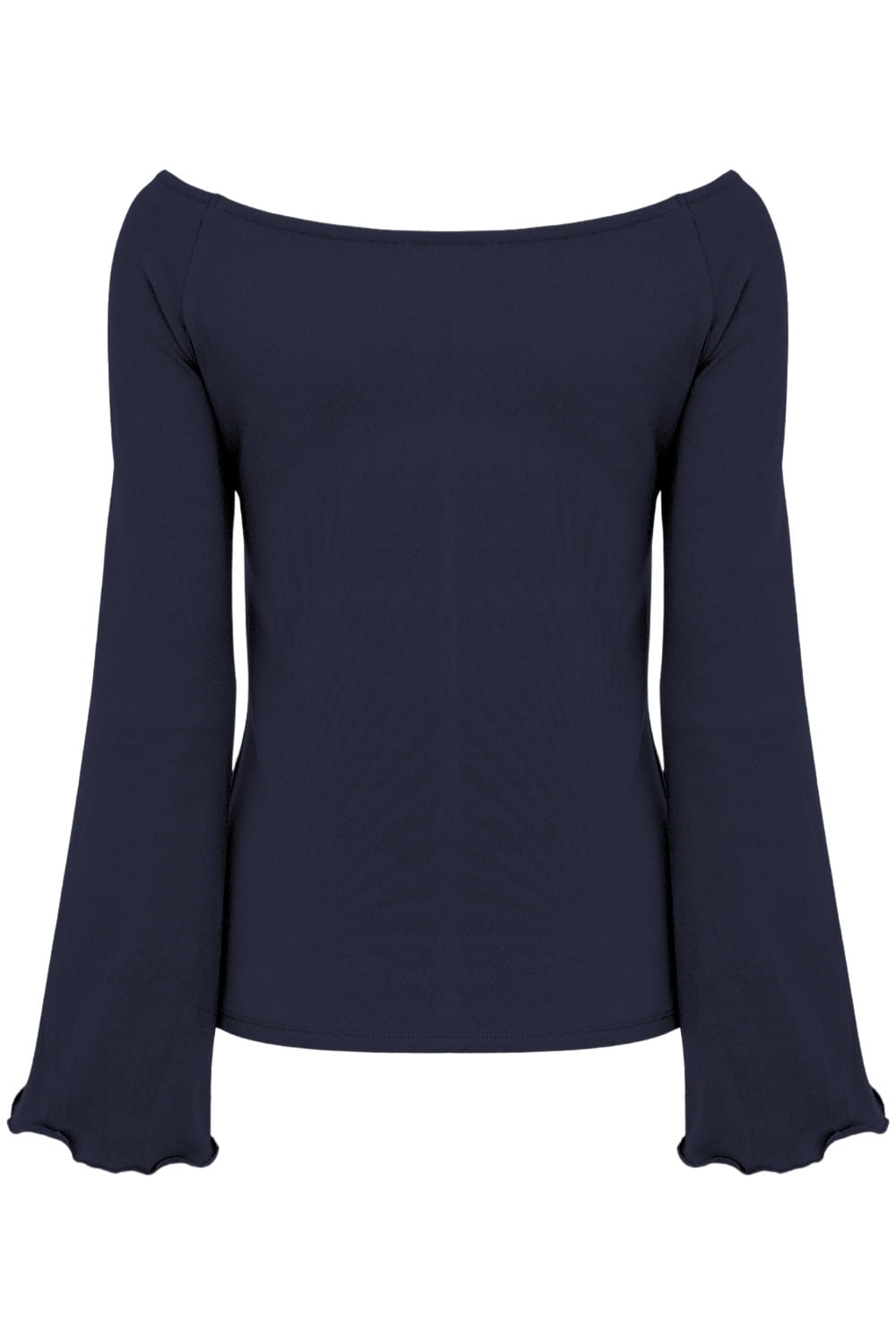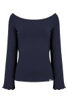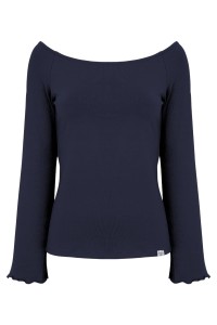 LAURA - Patriot Blue - wiskozowa taliowana bluzka z długimi reglanowymi rękawkami typu dzwonek z szerokim dekoltem w łódkę