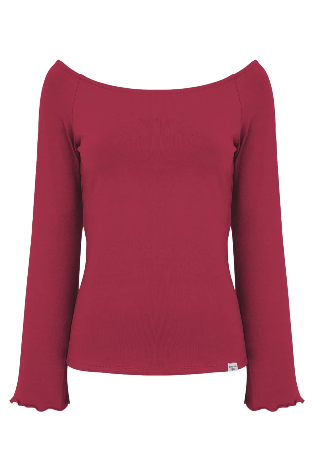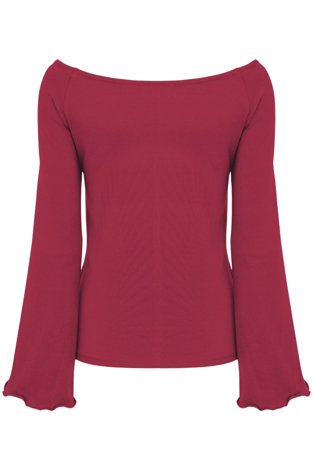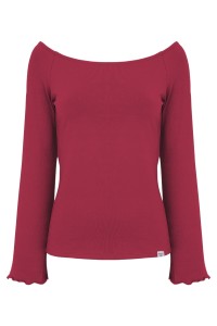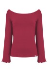LAURA - Red Bud - wiskozowa taliowana bluzka z długimi reglanowymi rękawkami typu dzwonek z szerokim dekoltem w łódkę