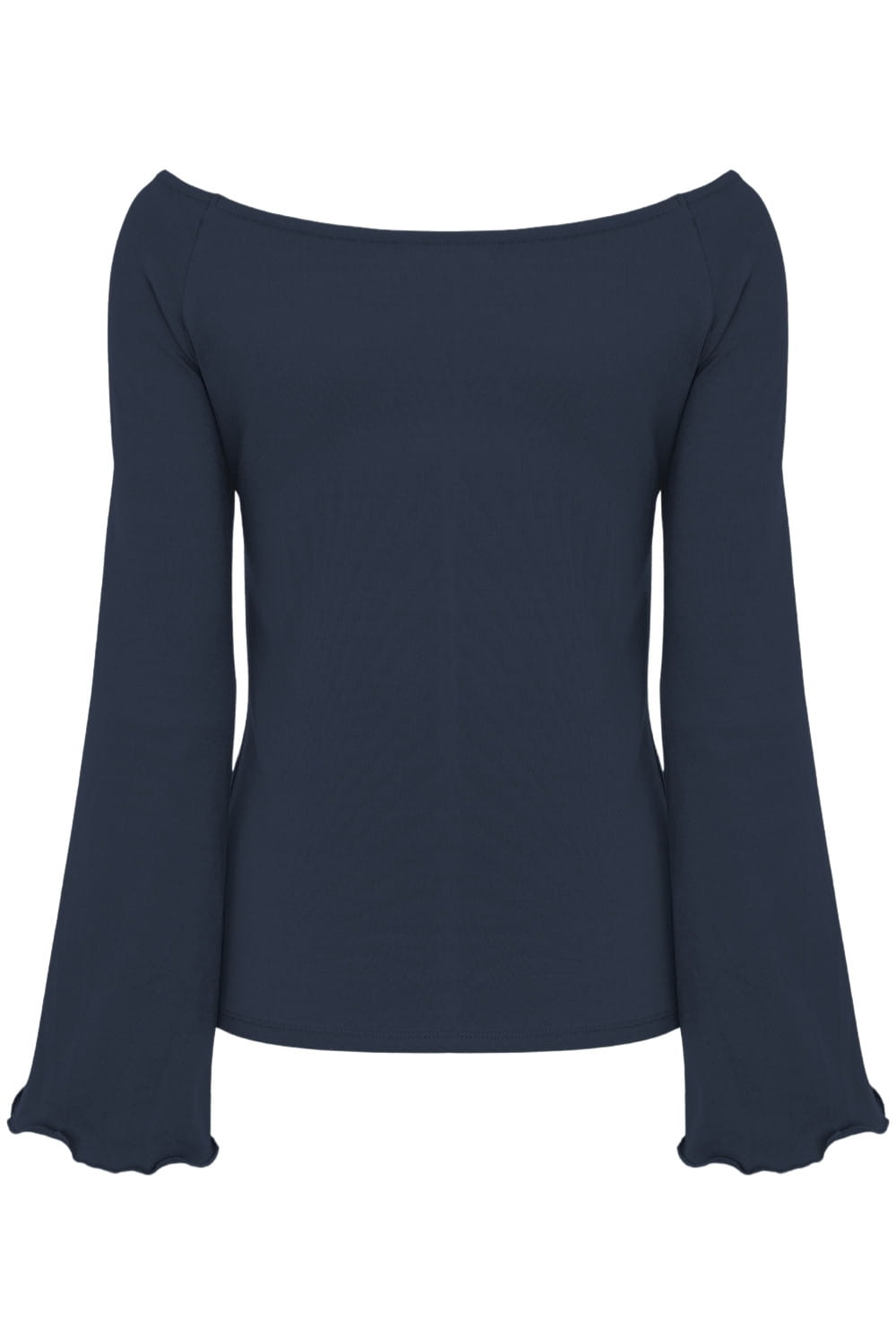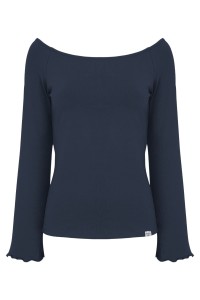 LAURA - Sargasso Sea - bawełniana taliowana bluzka z długimi reglanowymi rękawkami typu dzwonek z szerokim dekoltem w łódkę