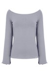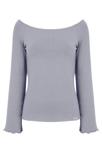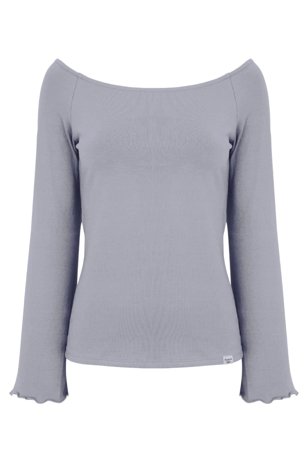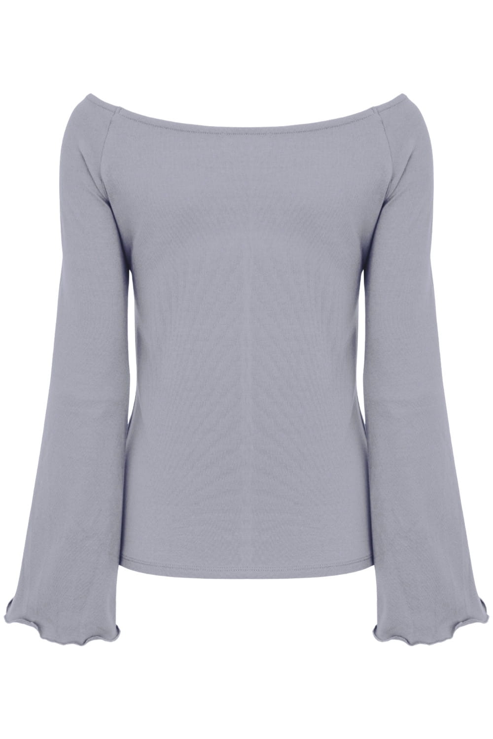 LAURA - Sleet - wiskozowa taliowana bluzka z długimi reglanowymi rękawkami typu dzwonek z szerokim dekoltem w łódkę
