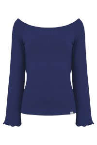 LAURA - Sodalite Blue - bawełniana taliowana bluzka z długimi reglanowymi rękawkami typu dzwonek z szerokim dekoltem w łódkę
