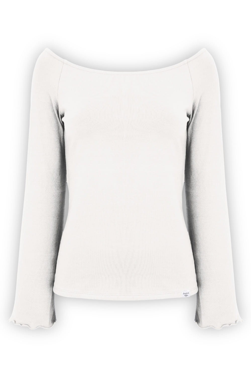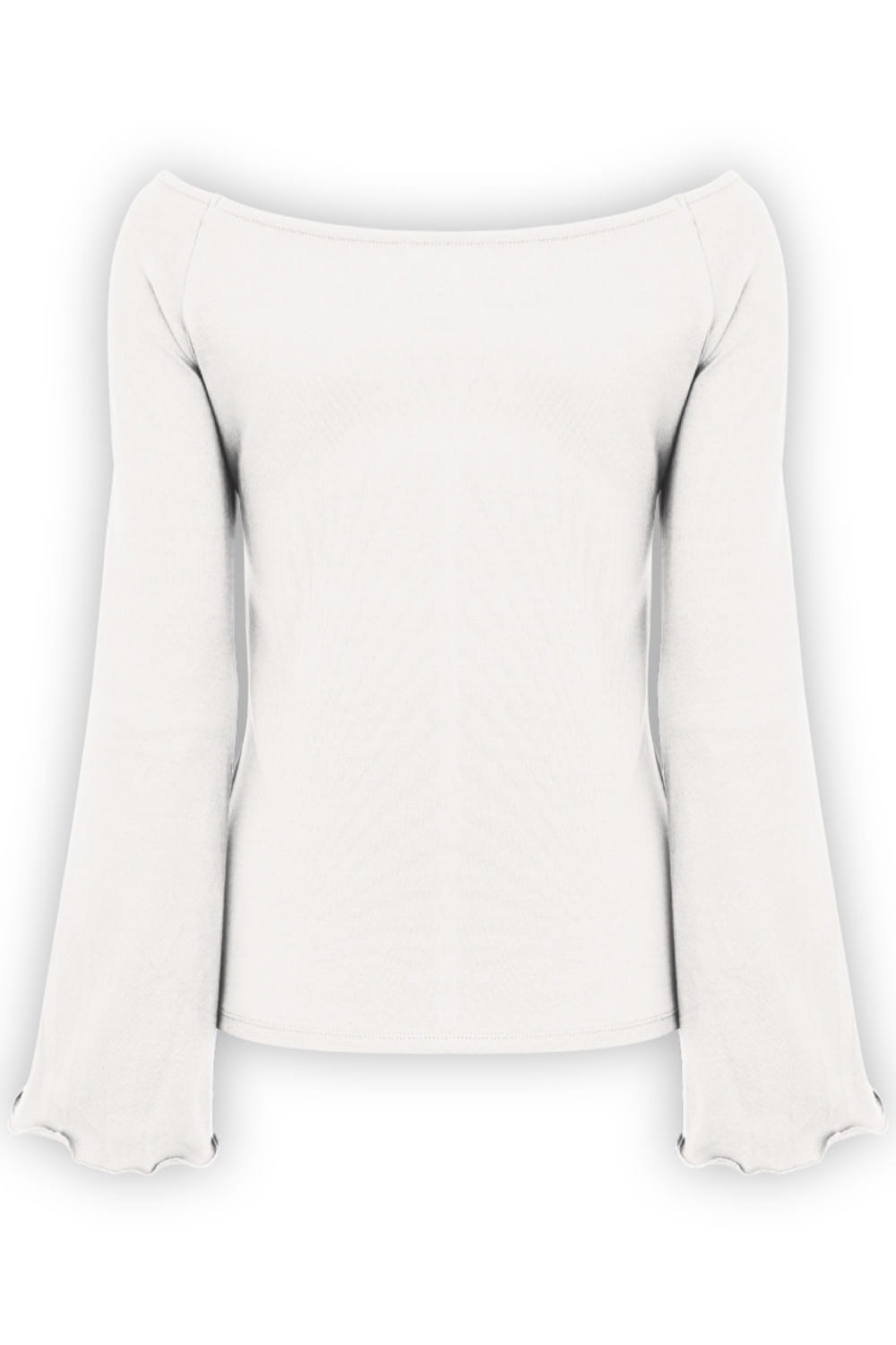 LAURA - Star White - bambusowa taliowana bluzka z długimi reglanowymi rękawkami typu dzwonek z szerokim dekoltem w łódkę