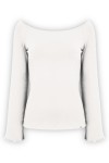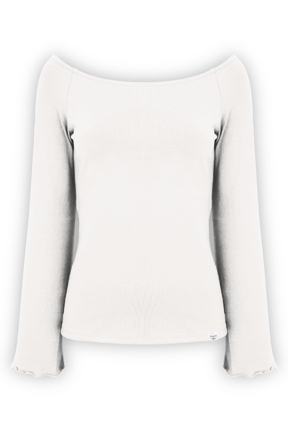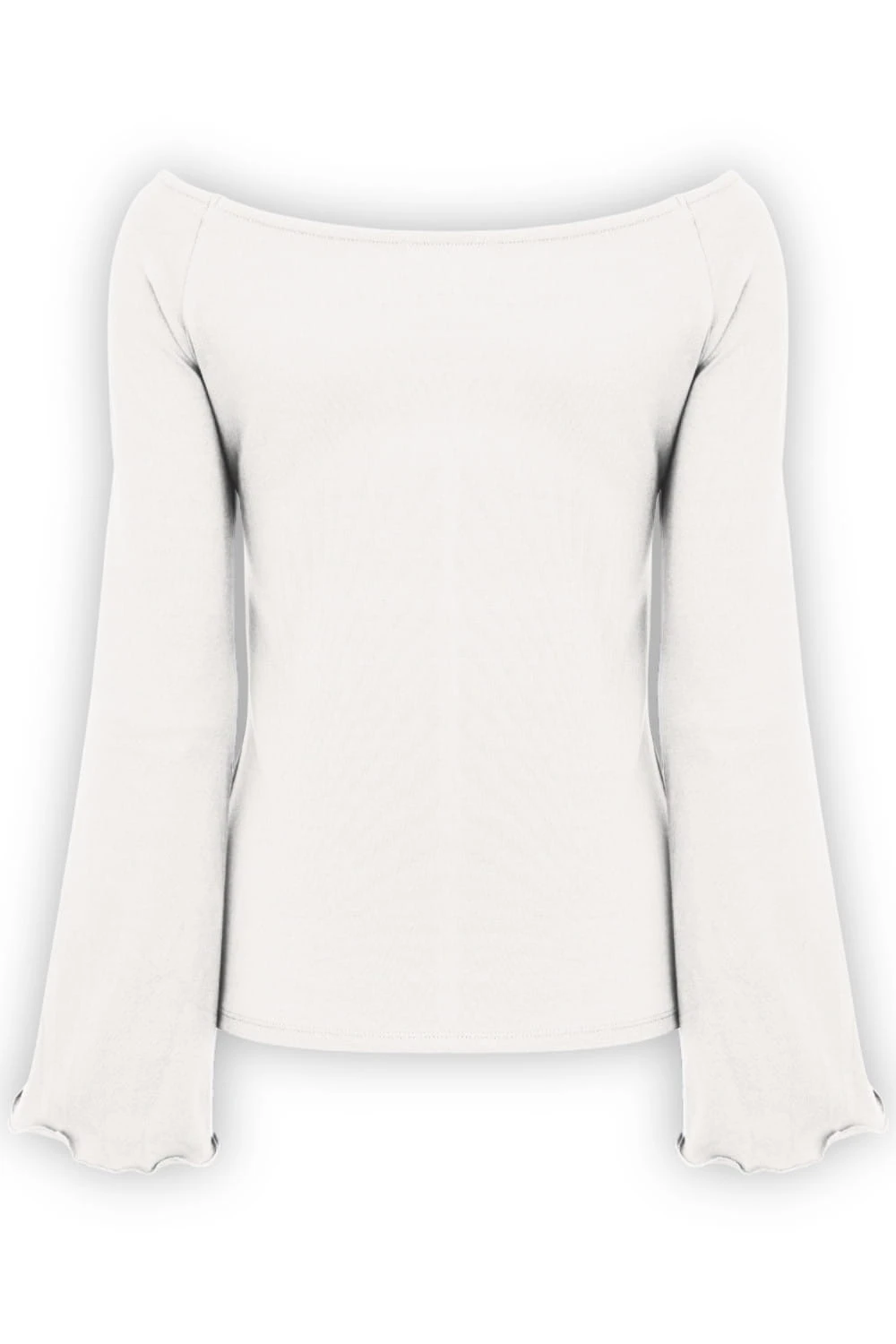 LAURA - Star White - bawełniana taliowana bluzka z długimi reglanowymi rękawkami typu dzwonek z szerokim dekoltem w łódkę