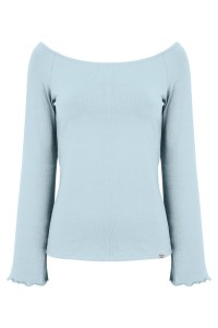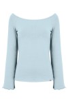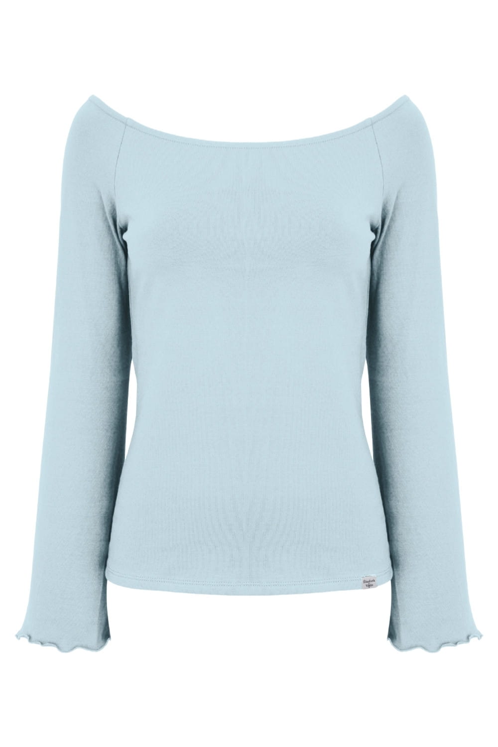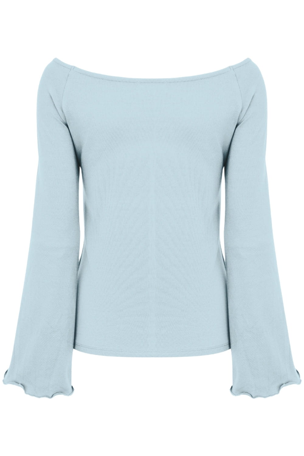 LAURA - Sterling Blue - wiskozowa taliowana bluzka z długimi reglanowymi rękawkami typu dzwonek z szerokim dekoltem w łódkę