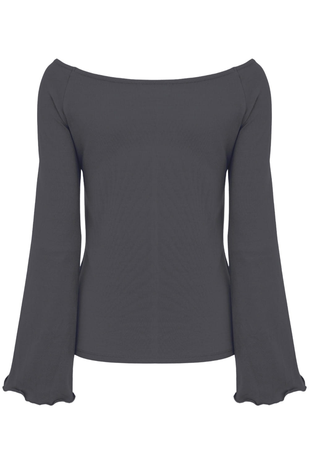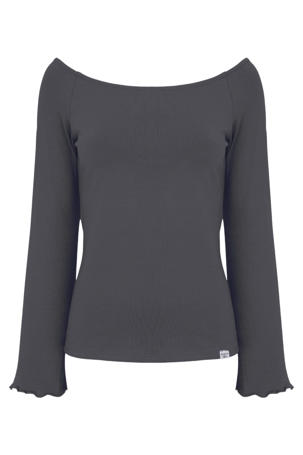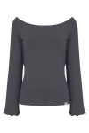 LAURA - Turbulence - wiskozowa taliowana bluzka z długimi reglanowymi rękawkami typu dzwonek z szerokim dekoltem w łódkę