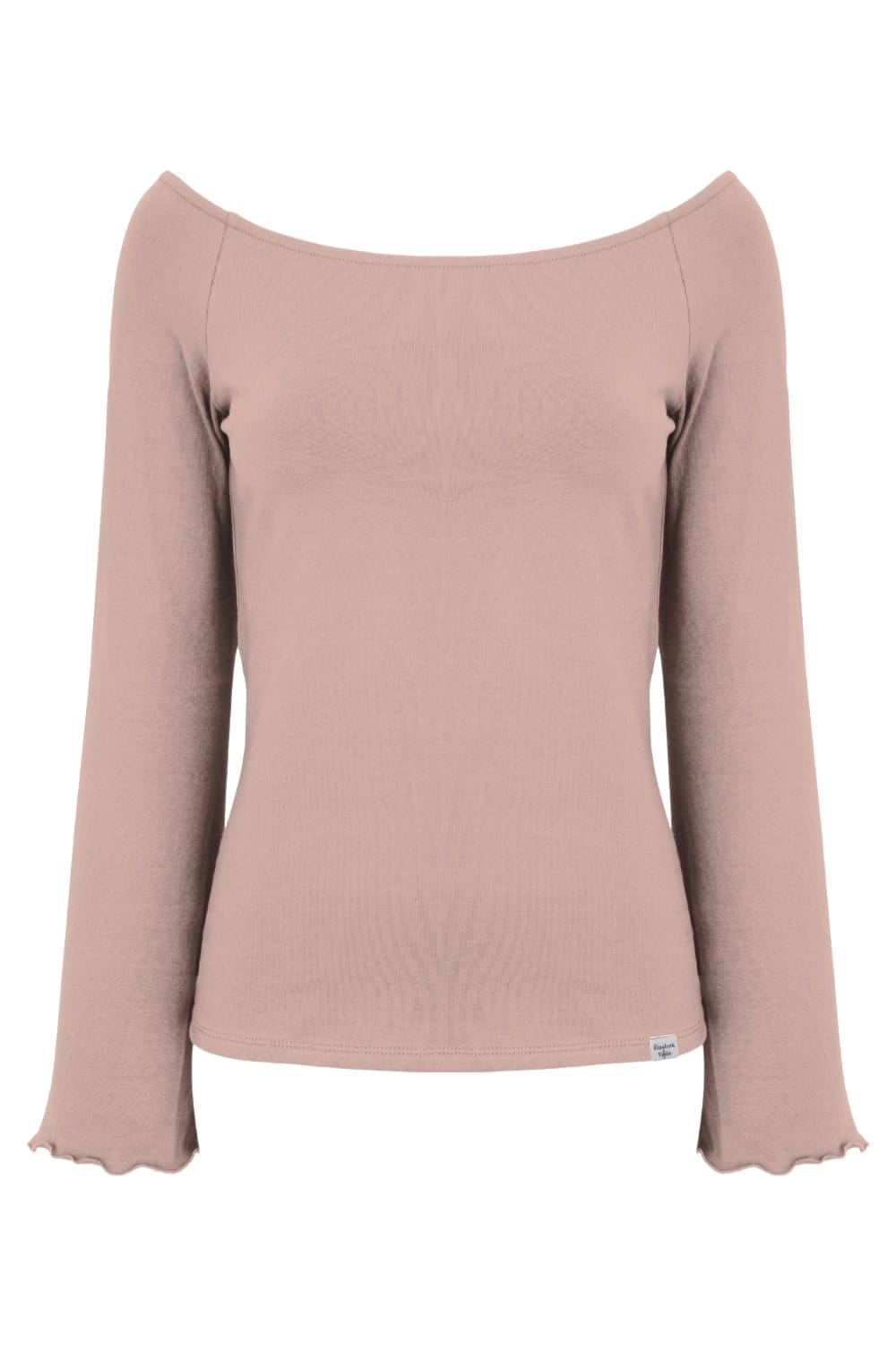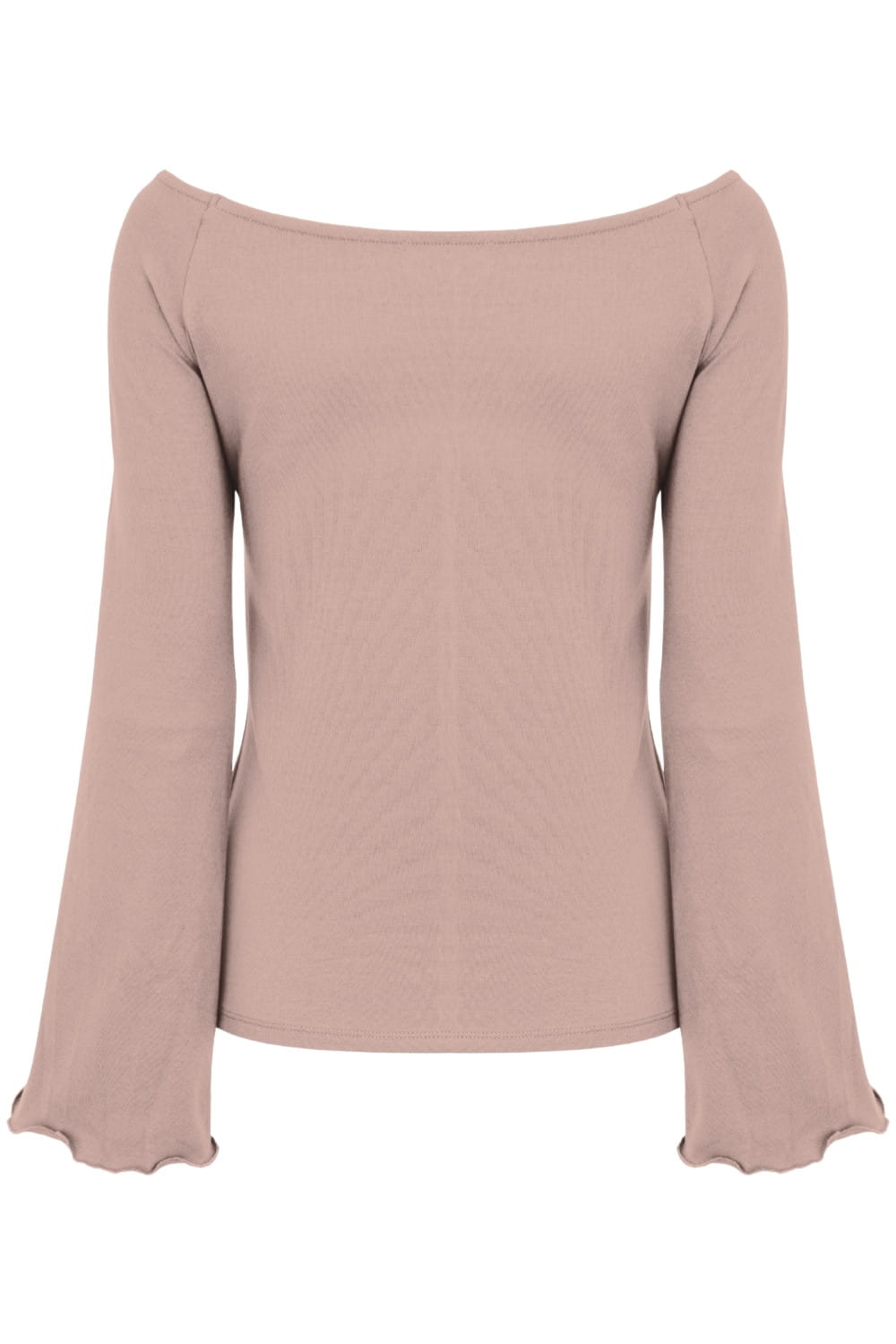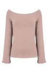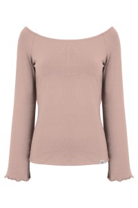 LAURA - Warm Taupe - wiskozowa taliowana bluzka z długimi reglanowymi rękawkami typu dzwonek z szerokim dekoltem w łódkę