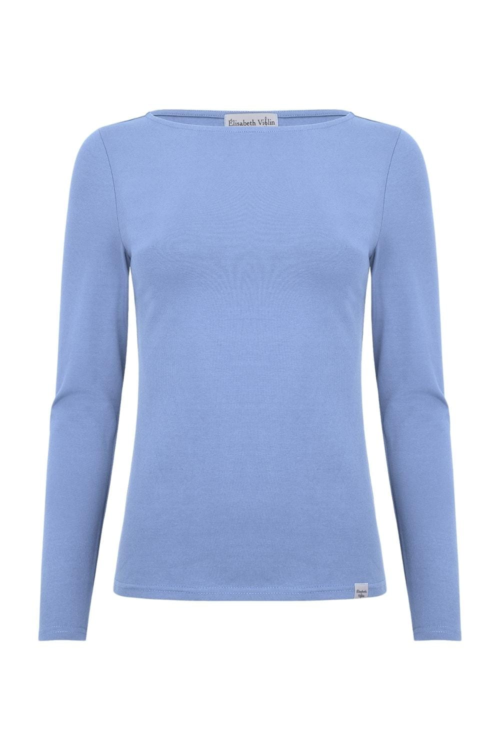 LÉA – Allure - BAWEŁNA GŁADKA – taliowana bluzka z dekoltem w łódkę i klasycznymi długimi rękawami