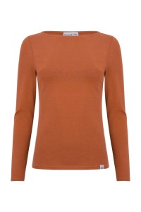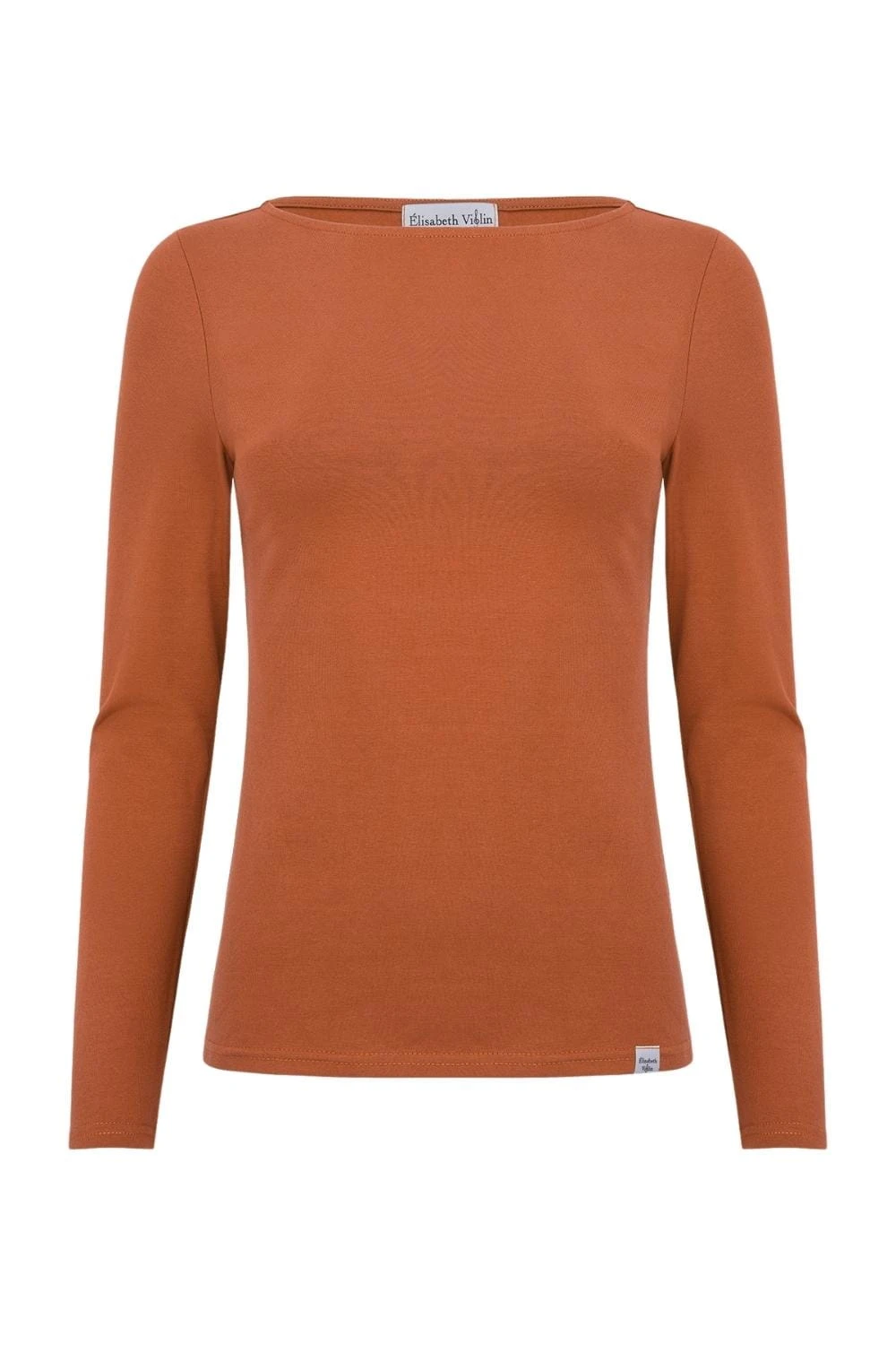 LÉA – Auburn - BAMBUS – taliowana bluzka z dekoltem w łódkę i klasycznymi długimi rękawami