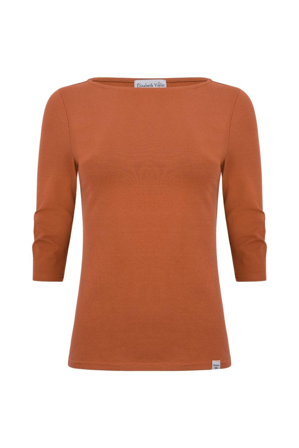 LÉA – Auburn - BAMBUS – taliowana bluzka z dekoltem w łódkę i klasycznymi rękawami 3/4