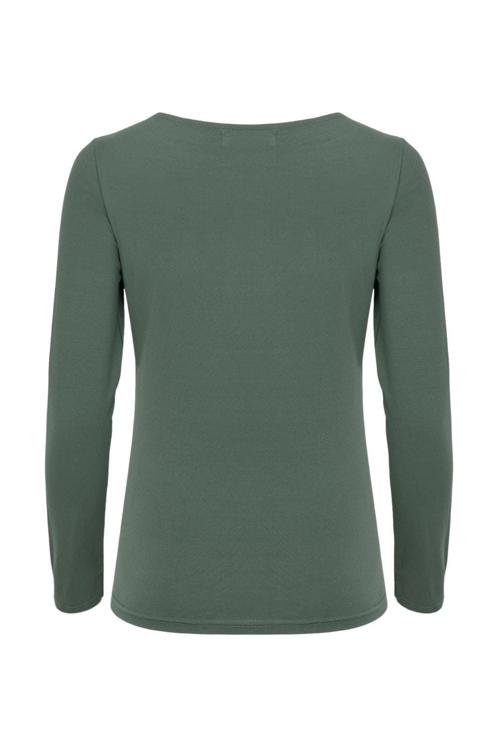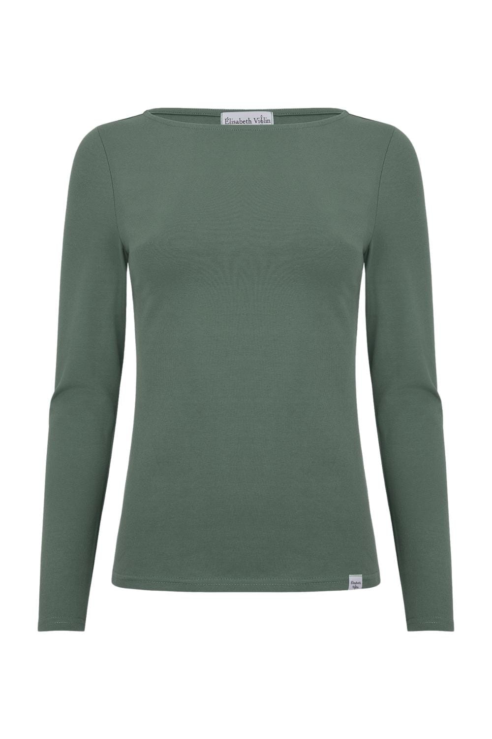 LÉA – Balsam Green - WISKOZA – taliowana bluzka z dekoltem w łódkę i klasycznymi długimi rękawami