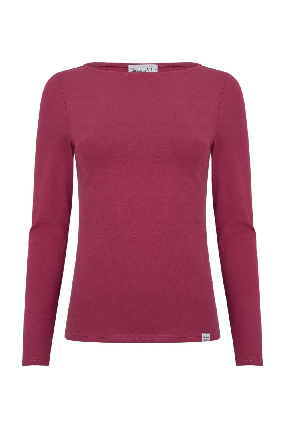 LÉA – Beaujolais - BAWEŁNA GŁADKA – taliowana bluzka z dekoltem w łódkę i klasycznymi długimi rękawami