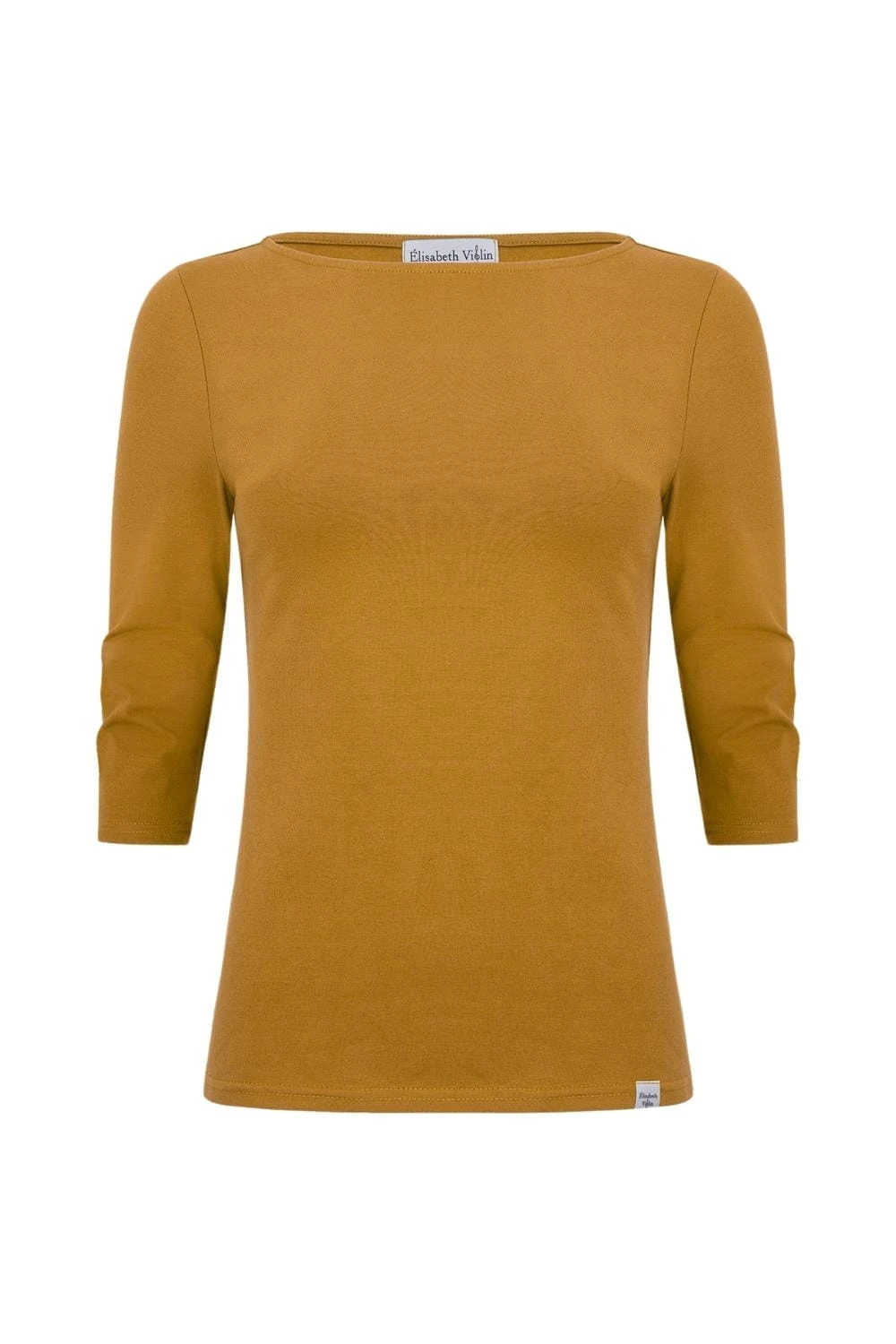 LÉA – Biscuit - BAWEŁNA GŁADKA – taliowana bluzka z dekoltem w łódkę i klasycznymi rękawami 3/4