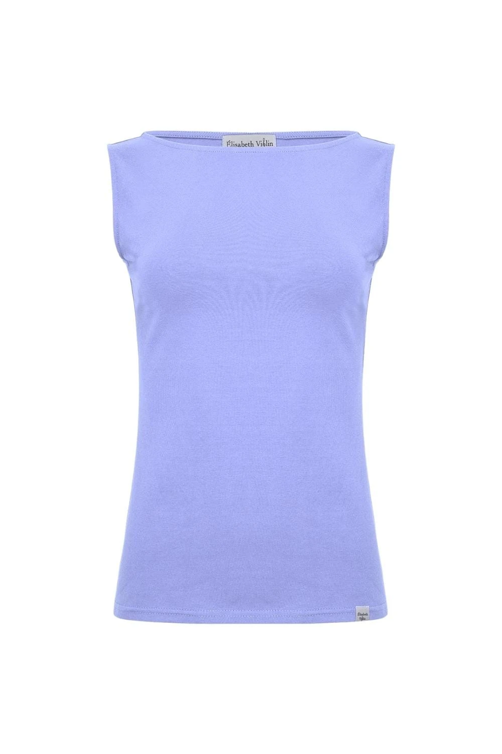 LÉA – Blue Bonnet - BAMBUS – taliowana bluzka z dekoltem w łódkę bez rękawków