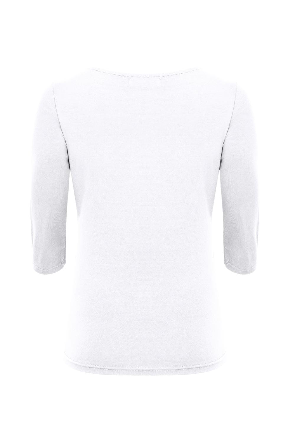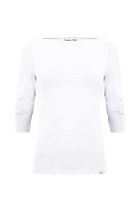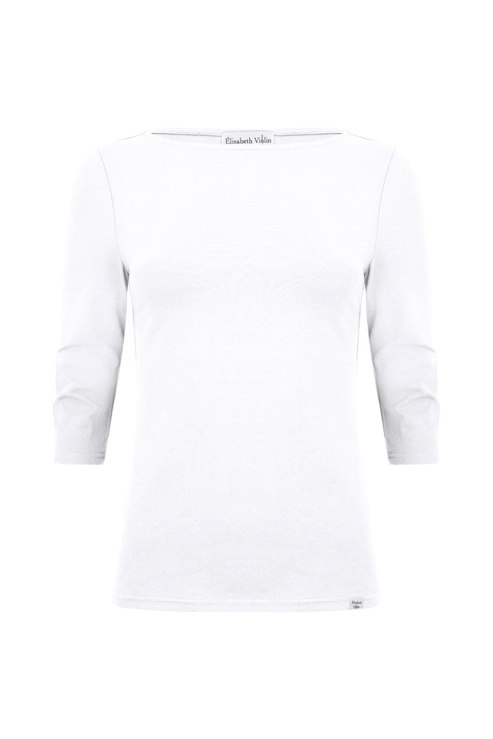 LÉA – Brilliant White - BAWEŁNA GŁADKA – taliowana bluzka z dekoltem w łódkę i klasycznymi rękawami 3/4