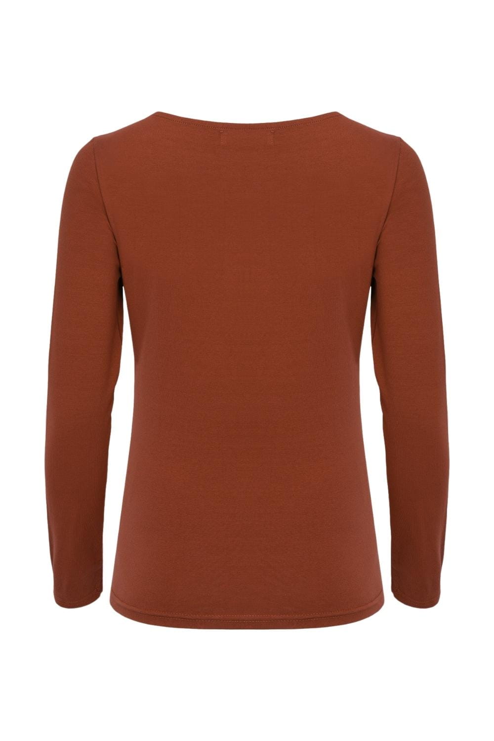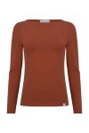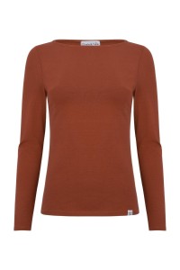 LÉA – Burnt Henna - WISKOZA – taliowana bluzka z dekoltem w łódkę i klasycznymi długimi rękawami