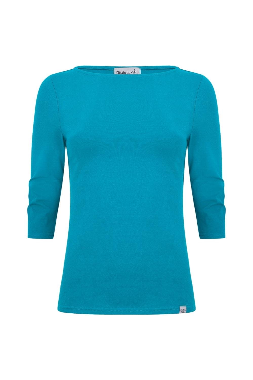 LÉA – Caribbean Sea - WISKOZA – taliowana bluzka z dekoltem w łódkę i klasycznymi rękawami 3/4