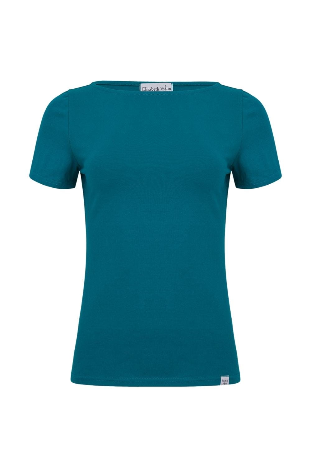 LÉA – Celestial - WISKOZA – taliowana bluzka z dekoltem w łódkę i klasycznymi krótkimi rękawami