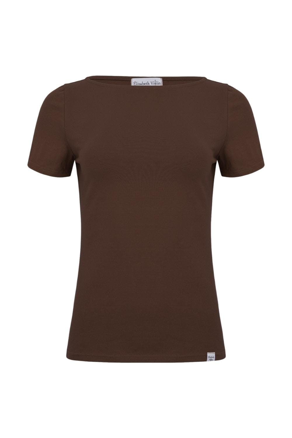 LÉA – Chestnut - WISKOZA – taliowana bluzka z dekoltem w łódkę i klasycznymi krótkimi rękawami