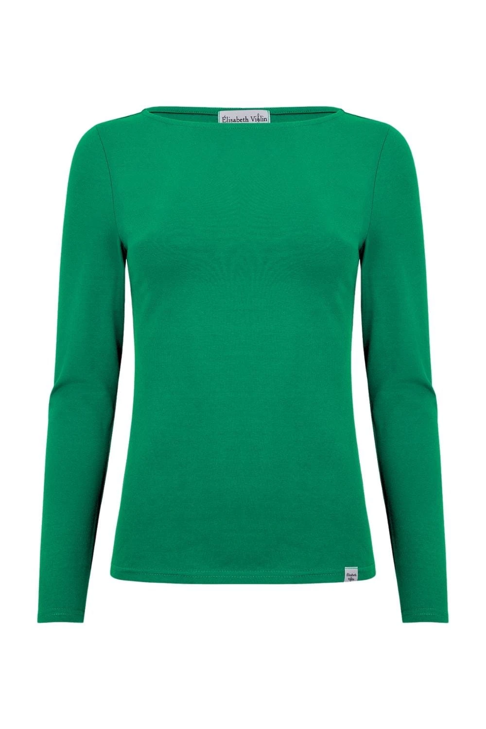 LÉA – Deep Green - BAWEŁNA GŁADKA – taliowana bluzka z dekoltem w łódkę i klasycznymi długimi rękawami