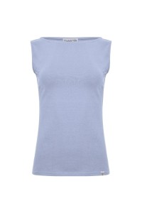 LÉA – Faded Denim - WISKOZA – taliowana bluzka z dekoltem w łódkę bez rękawków
