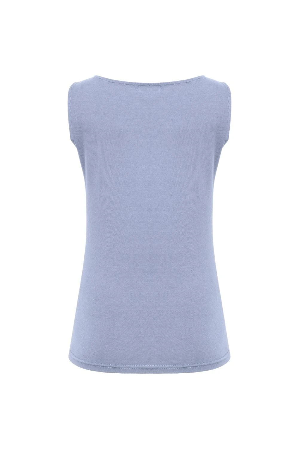 Kobieca, delikatnie taliowana bluzka z wiskozy z dekoltem w łódkę. Jest bez rękawków - idealna pod marynarki i swetry, lub solo w cieplejsze dni.