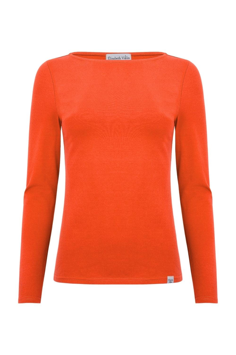 LÉA – Flame Scarlet - WISKOZA – taliowana bluzka z dekoltem w łódkę i klasycznymi długimi rękawami