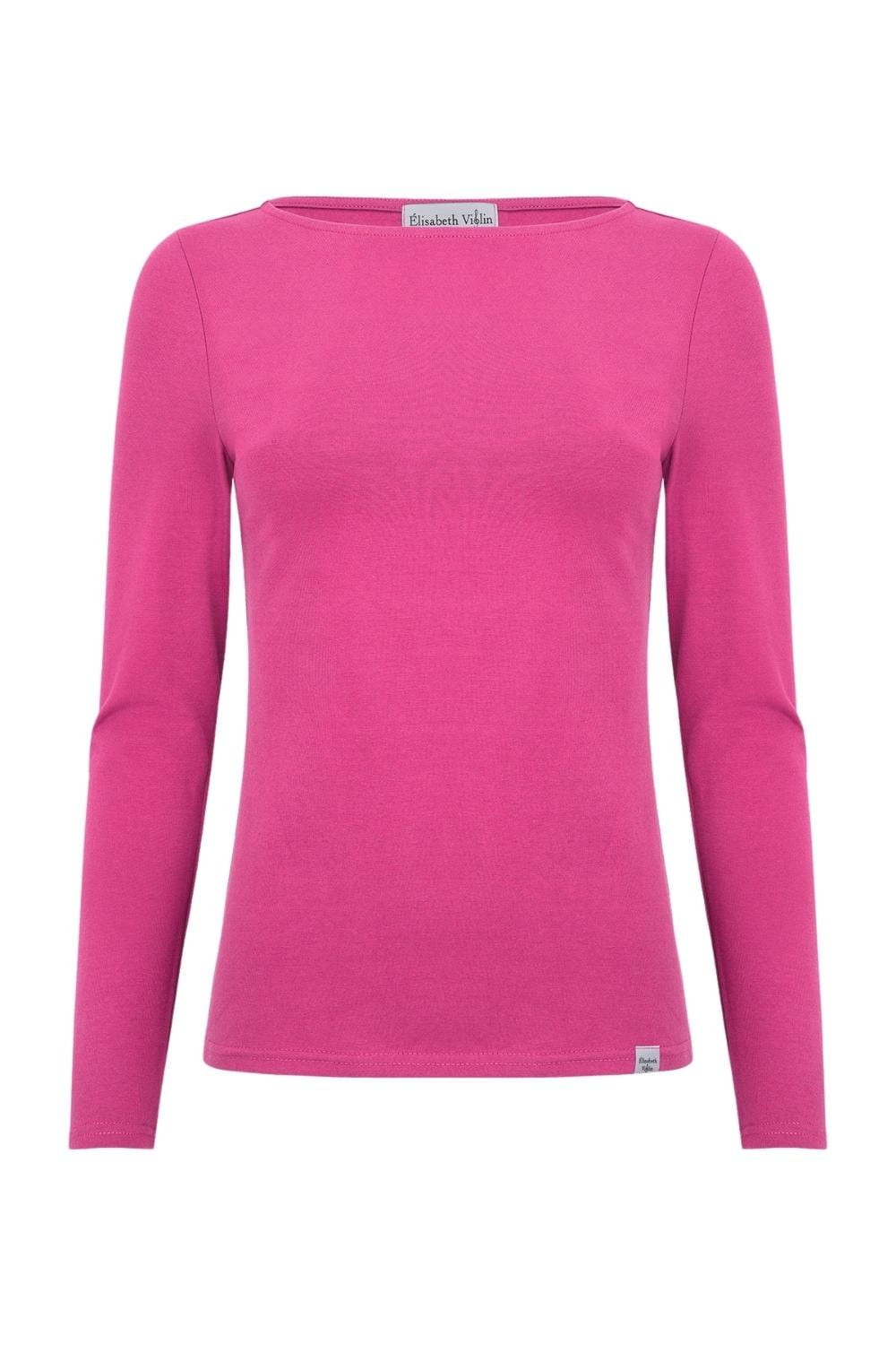 LÉA – Fuchsia Rose - WISKOZA – taliowana bluzka z dekoltem w łódkę i klasycznymi długimi rękawami