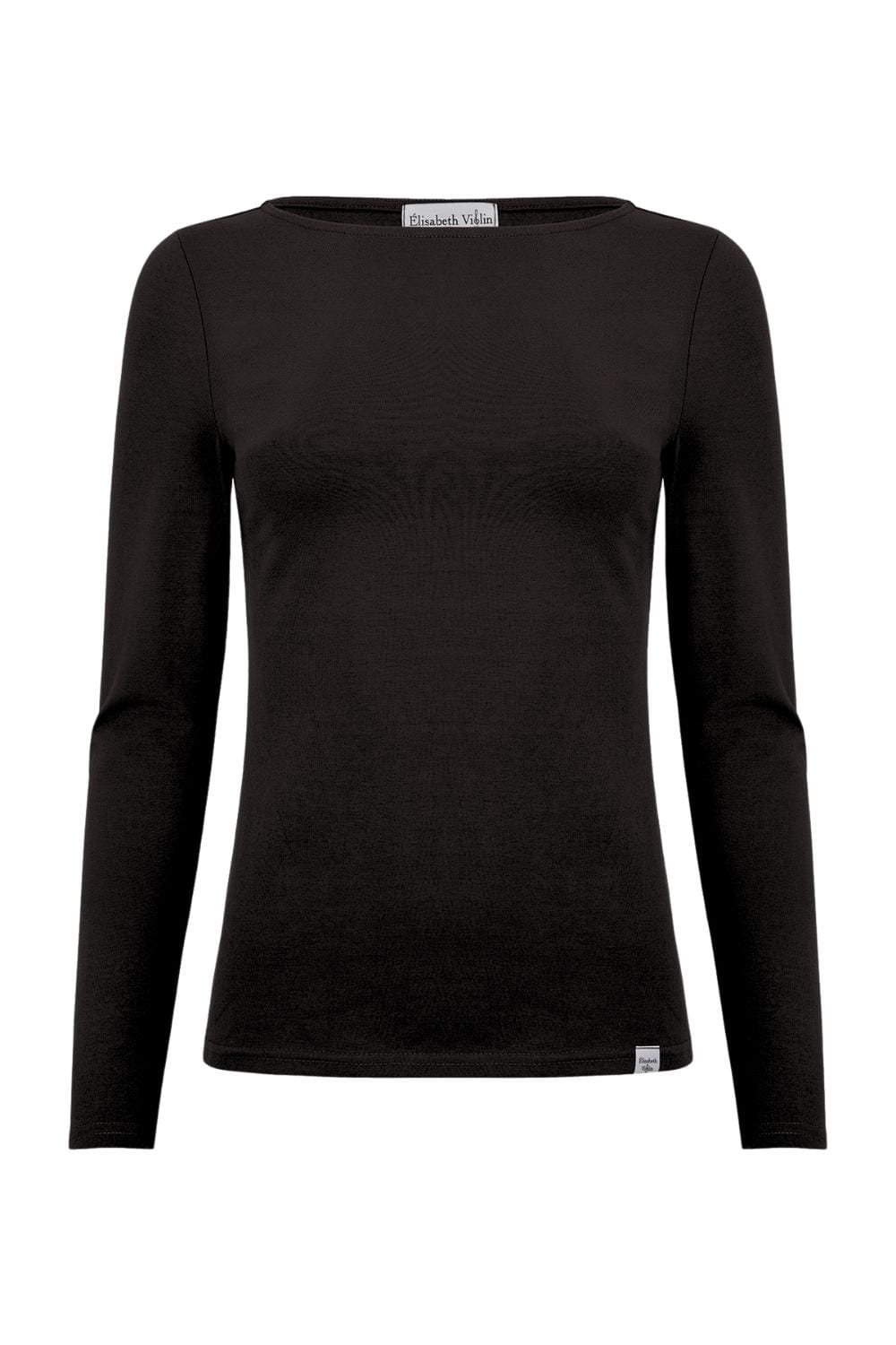LÉA – Ganache - WISKOZA – taliowana bluzka z dekoltem w łódkę i klasycznymi długimi rękawami