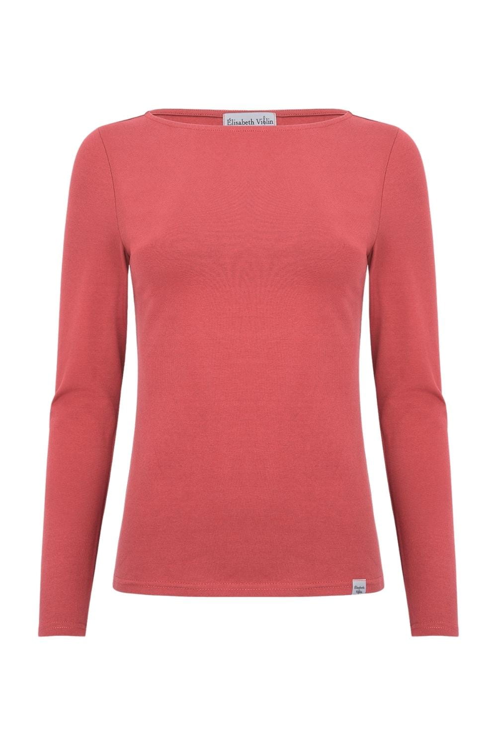 LÉA – Garnet Rose - WISKOZA – taliowana bluzka z dekoltem w łódkę i klasycznymi długimi rękawami
