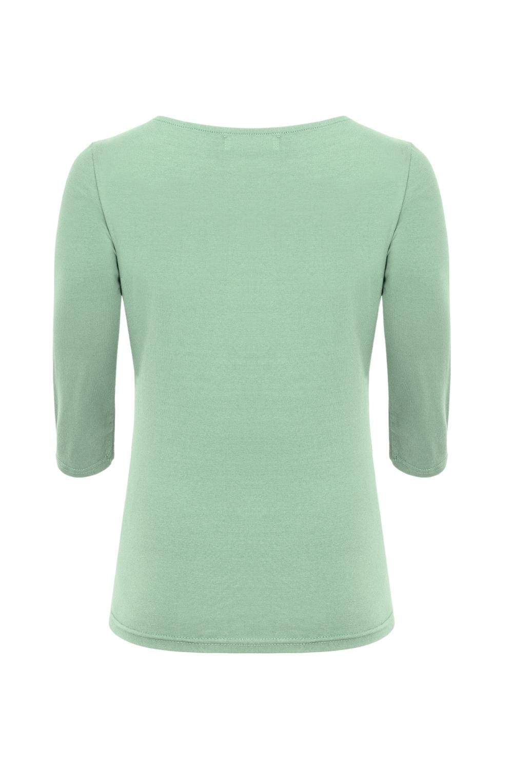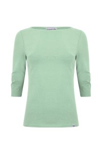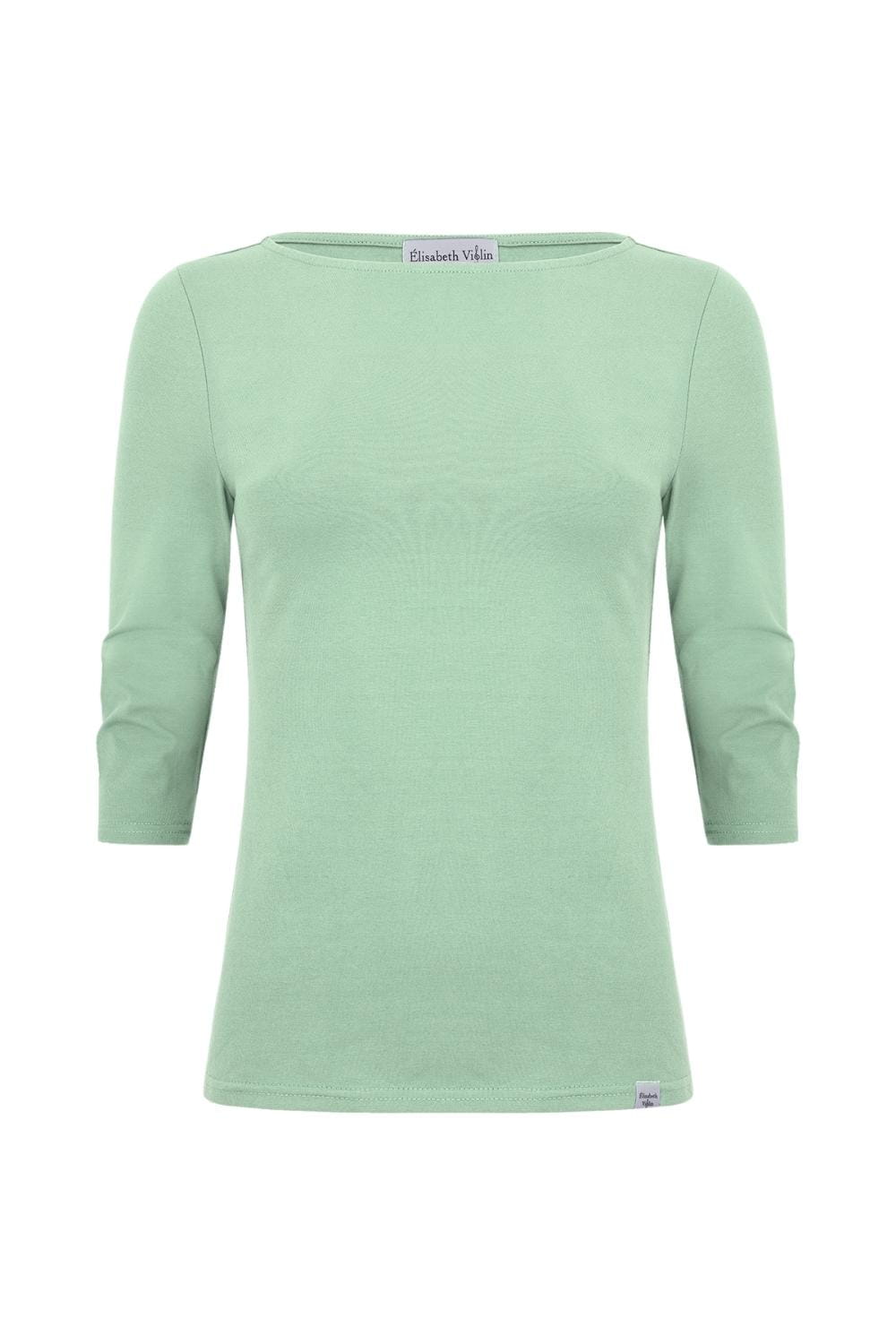 LÉA – Grayed Jade - BAMBUS – taliowana bluzka z dekoltem w łódkę i klasycznymi rękawami 3/4