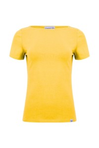 LÉA – Habañero Gold - BAWEŁNA GŁADKA – taliowana bluzka z dekoltem w łódkę i klasycznymi krótkimi rękawami