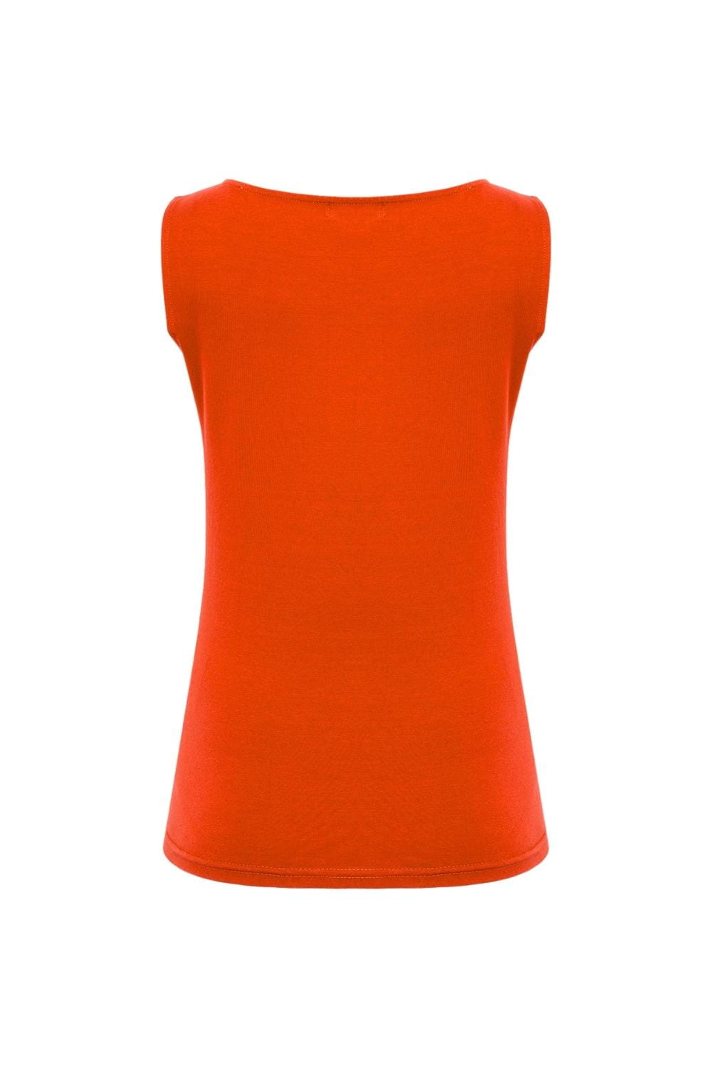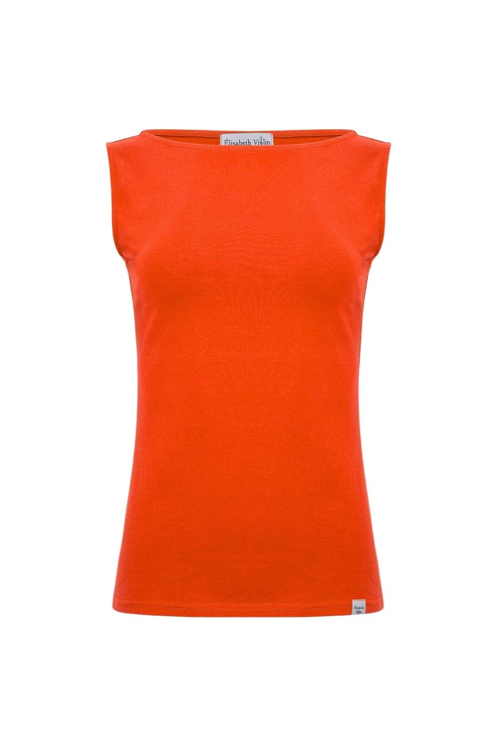 LÉA – Mandarin Red - BAWEŁNA GŁADKA – taliowana bluzka z dekoltem w łódkę bez rękawków