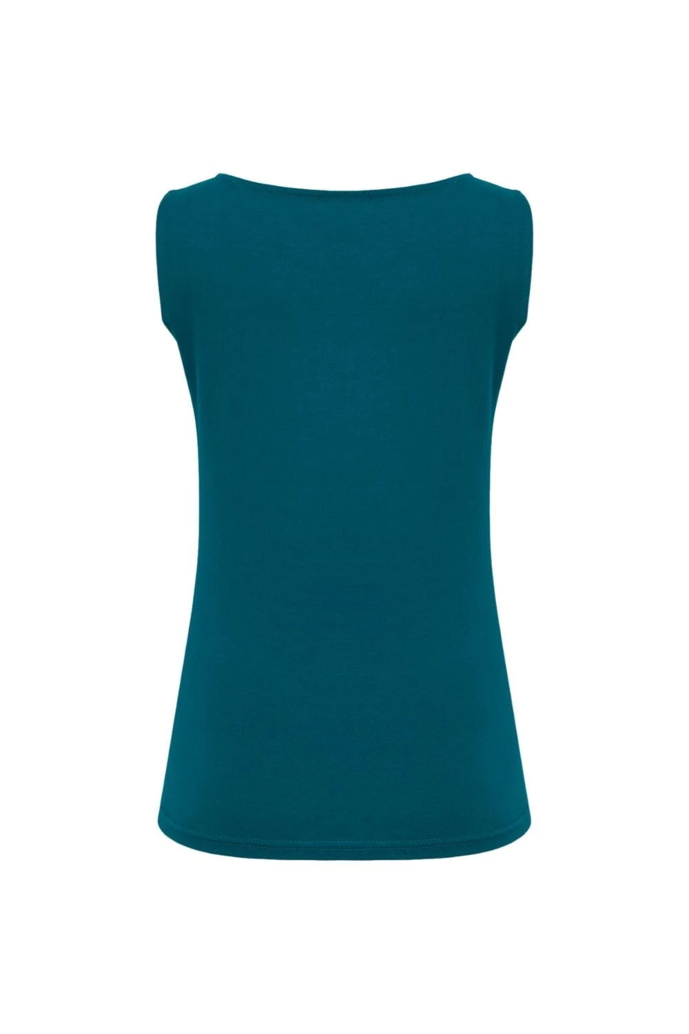 Kobieca, delikatnie taliowana bluzka z gładkiej bawełny z dekoltem w łódkę. Jest bez rękawków - idealna pod marynarki i swetry, lub solo w cieplejsze dni.