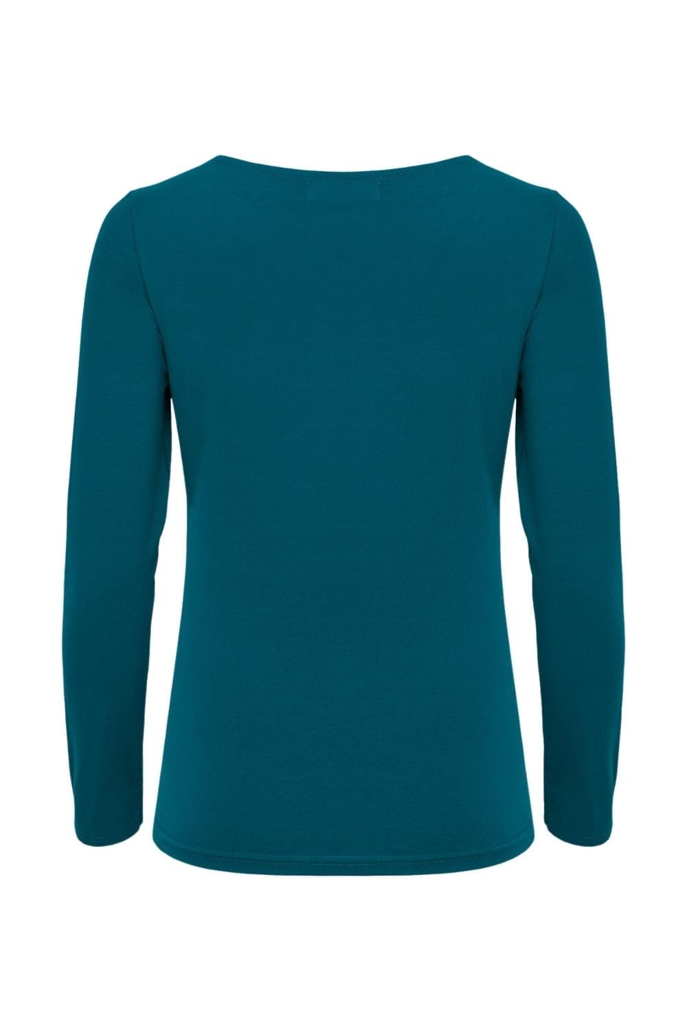 LÉA – Moroccan Blue - WISKOZA – taliowana bluzka z dekoltem w łódkę i klasycznymi długimi rękawami