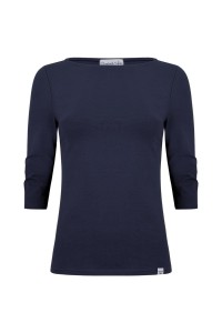 LÉA –Patriot Blue - WISKOZA – taliowana bluzka z dekoltem w łódkę i klasycznymi rękawami 3/4