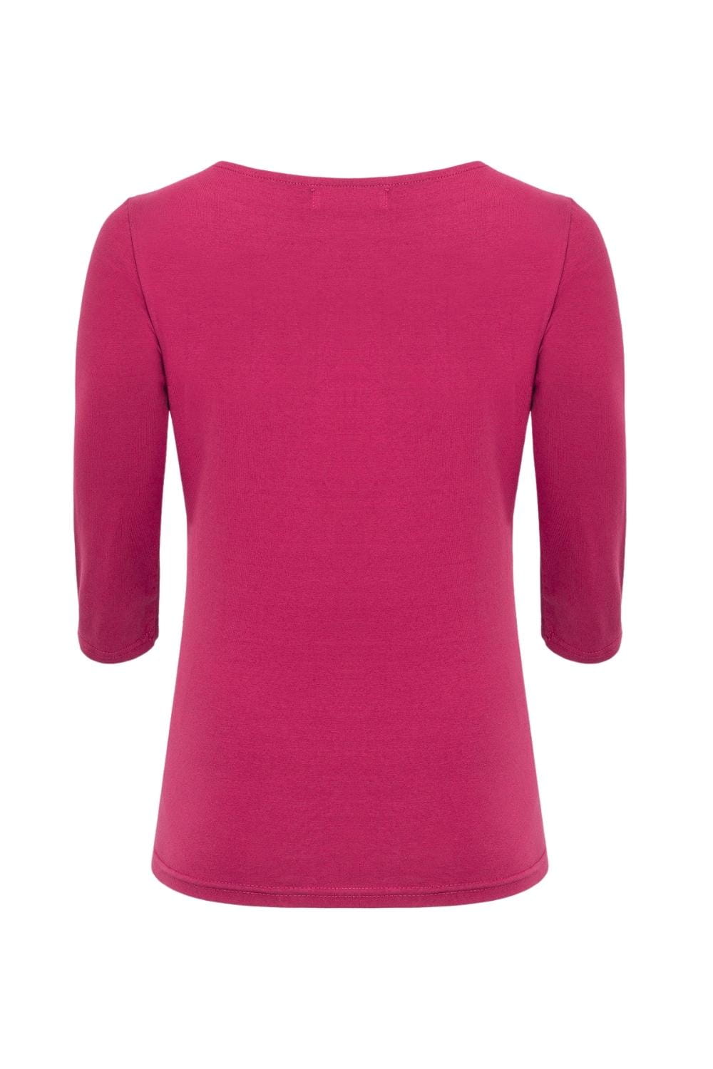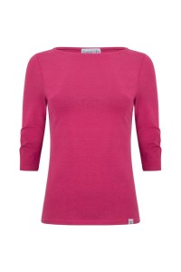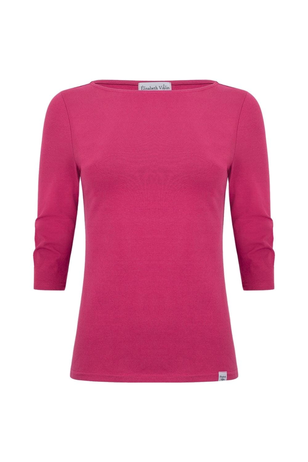LÉA – Pink Peacock - BAWEŁNA GŁADKA – taliowana bluzka z dekoltem w łódkę i klasycznymi rękawami 3/4